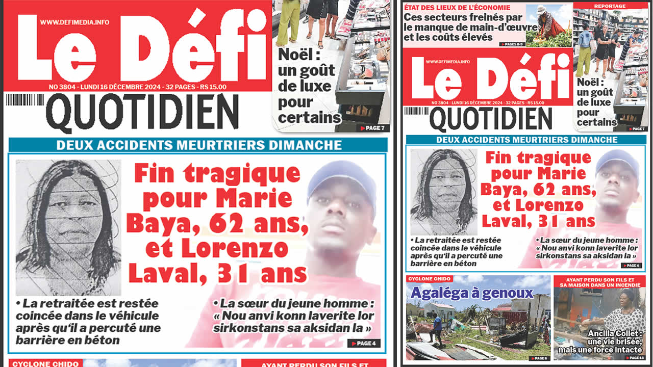 ? Voici la Une du Défi Quotidien. Le journal est en vente à Rs 15 l'exemplaire aux endroits habituels (supermarchés, boutiques, tabagies, superettes). Bonne lecture !
