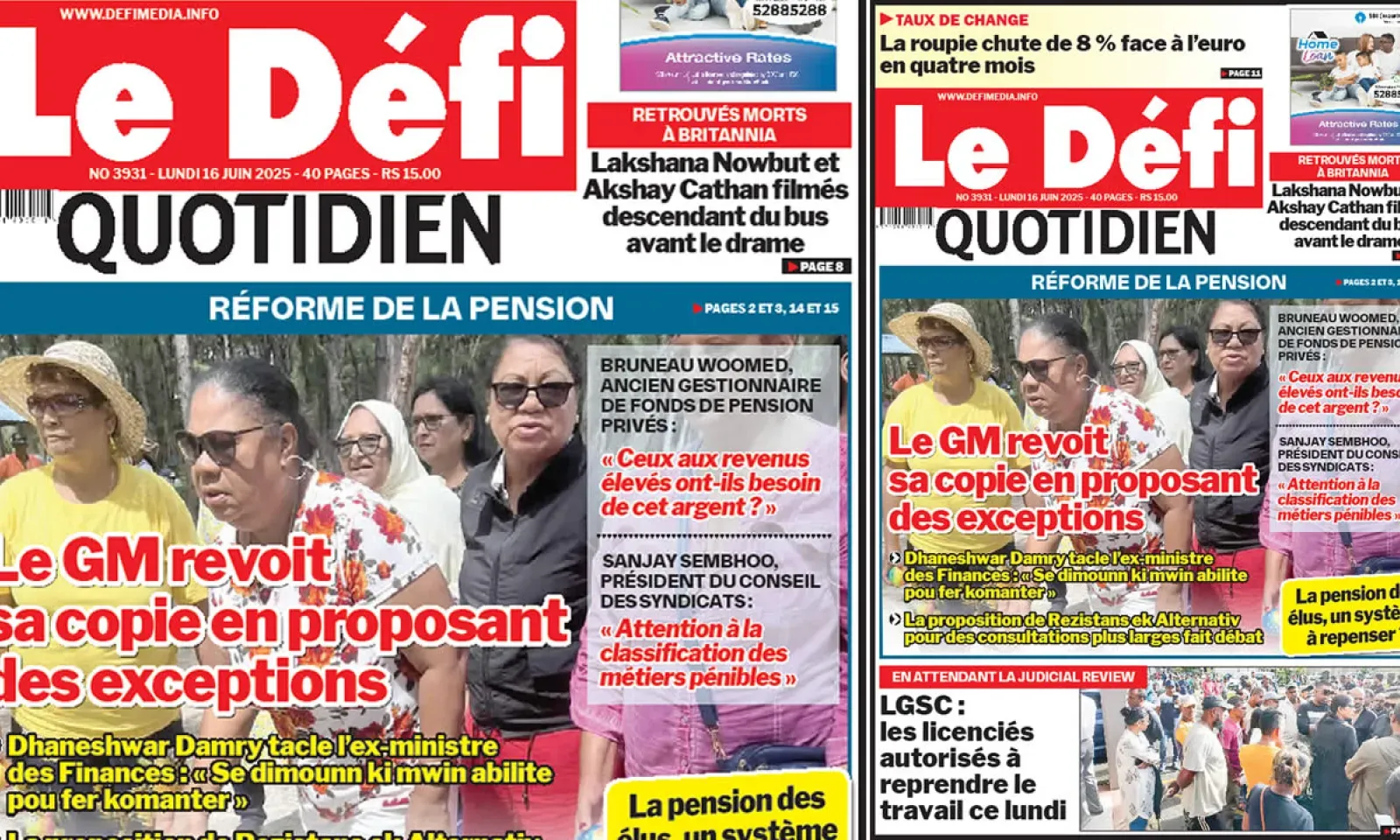 ? Voici la Une du Défi Quotidien. Le journal est en vente à Rs 15 l'exemplaire aux endroits habituels (supermarchés, boutiques, tabagies, superettes). Bonne lecture !
