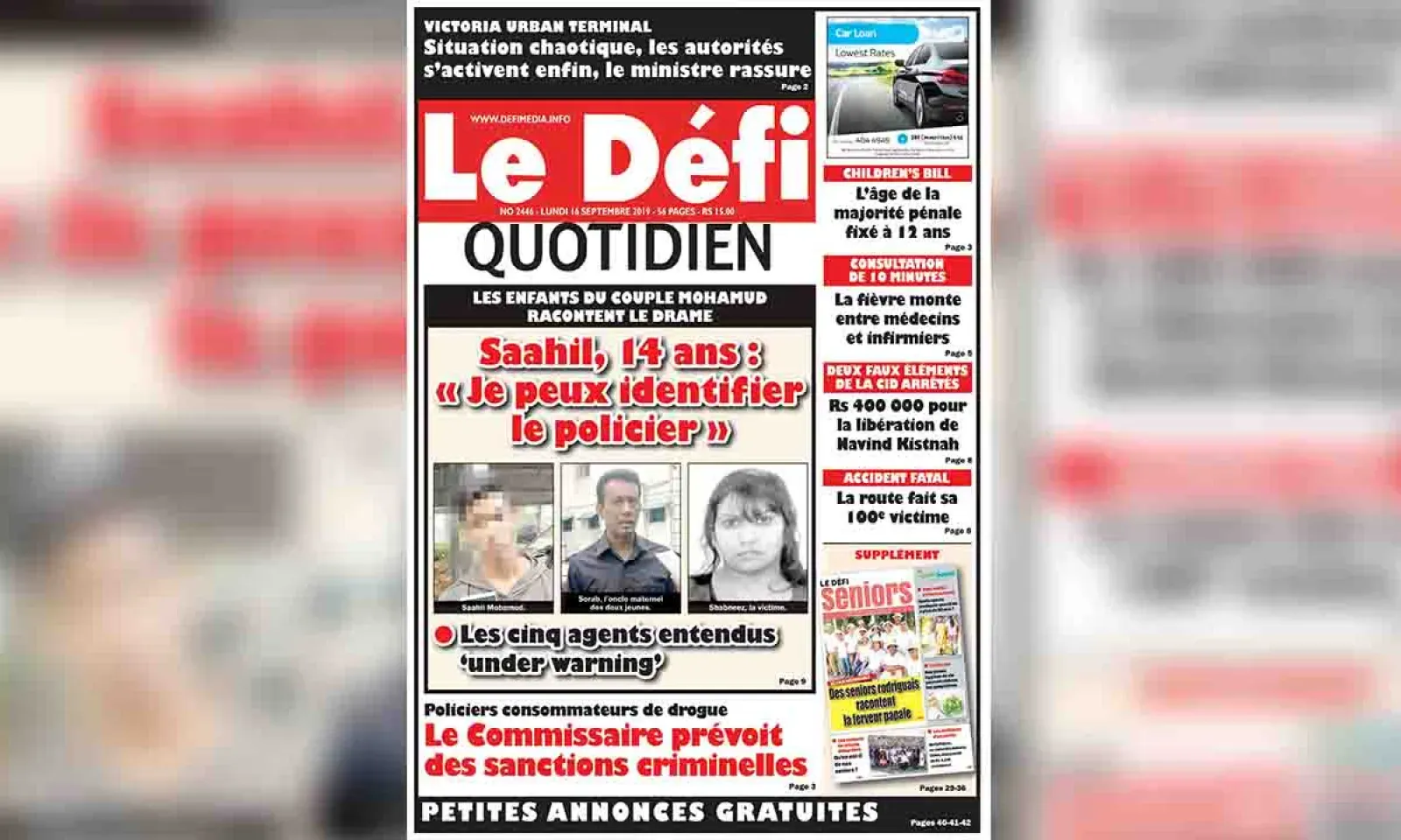 La CID de Quartier-Militaire a procédé à l’audition des deux fils du couple Mohamud, dimanche 15 septembre. Ils ont expliqué le fil des événements, le jour du drame. L’aîné dit pouvoir identifier le policier. Par ailleurs, les agents en faction le jour du drame seront entendus ‘under warning’ ce lundi 16 septembre.