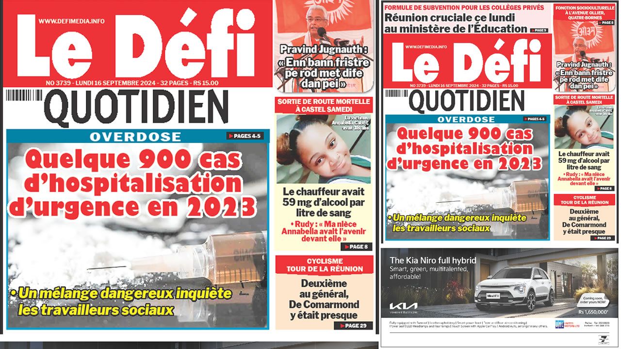 ? Voici la Une du Défi Quotidien. Le journal est en vente à Rs 15 l'exemplaire aux endroits habituels (supermarchés, boutiques, tabagies, superettes). Bonne lecture !