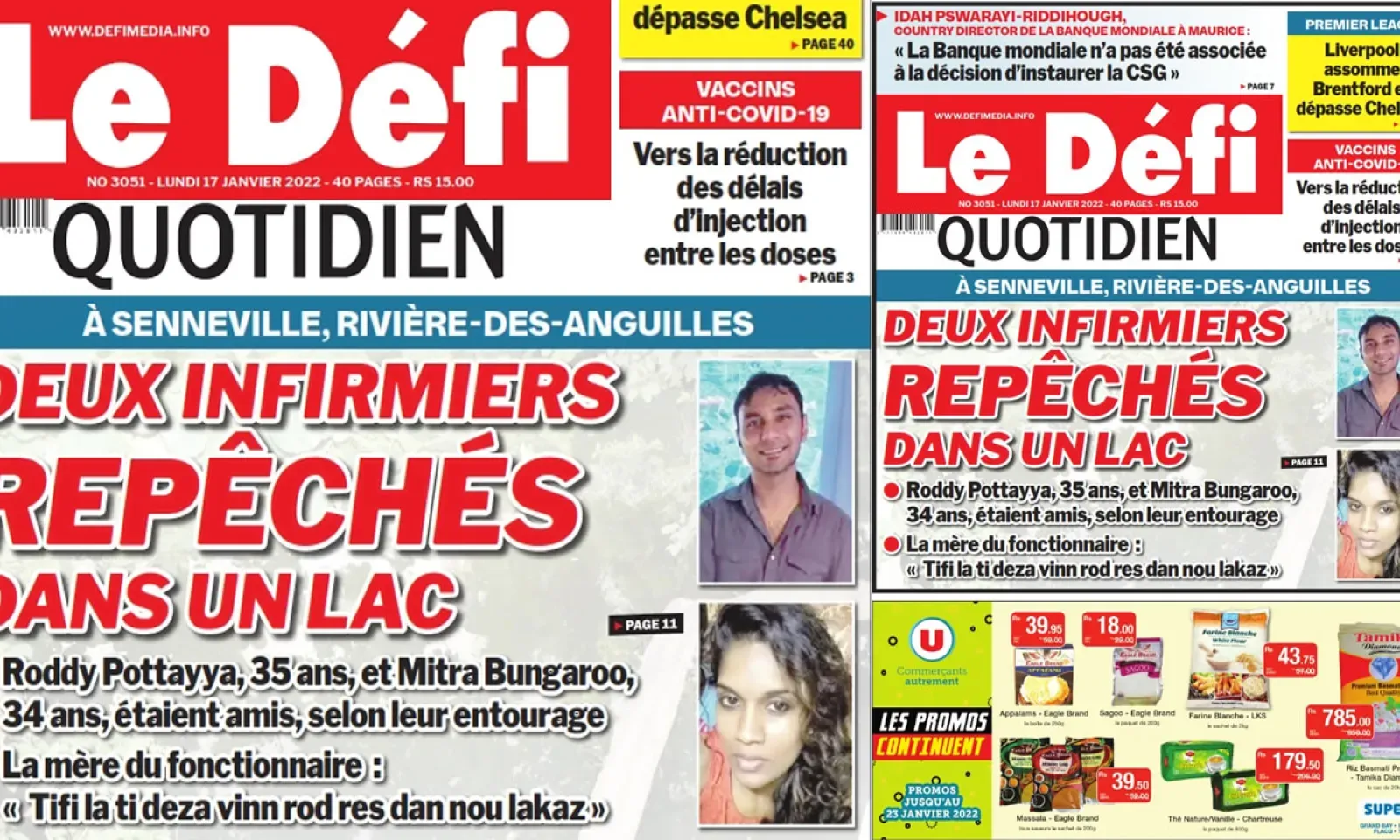 Voici la une du Défi Quotidien de ce lundi 17 janvier 2022