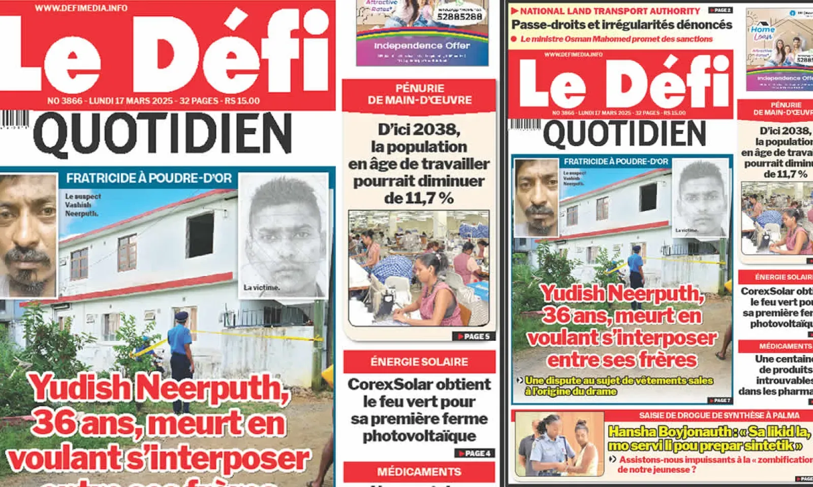 ? Voici la Une du Défi Quotidien. Le journal est en vente à Rs 15 l'exemplaire aux endroits habituels (supermarchés, boutiques, tabagies, superettes). Bonne lecture !