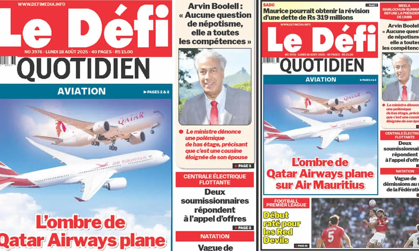 ? Voici la Une du Défi Quotidien. Le journal est en vente à Rs 15 l'exemplaire aux endroits habituels (supermarchés, boutiques, tabagies, superettes). Bonne lecture !
