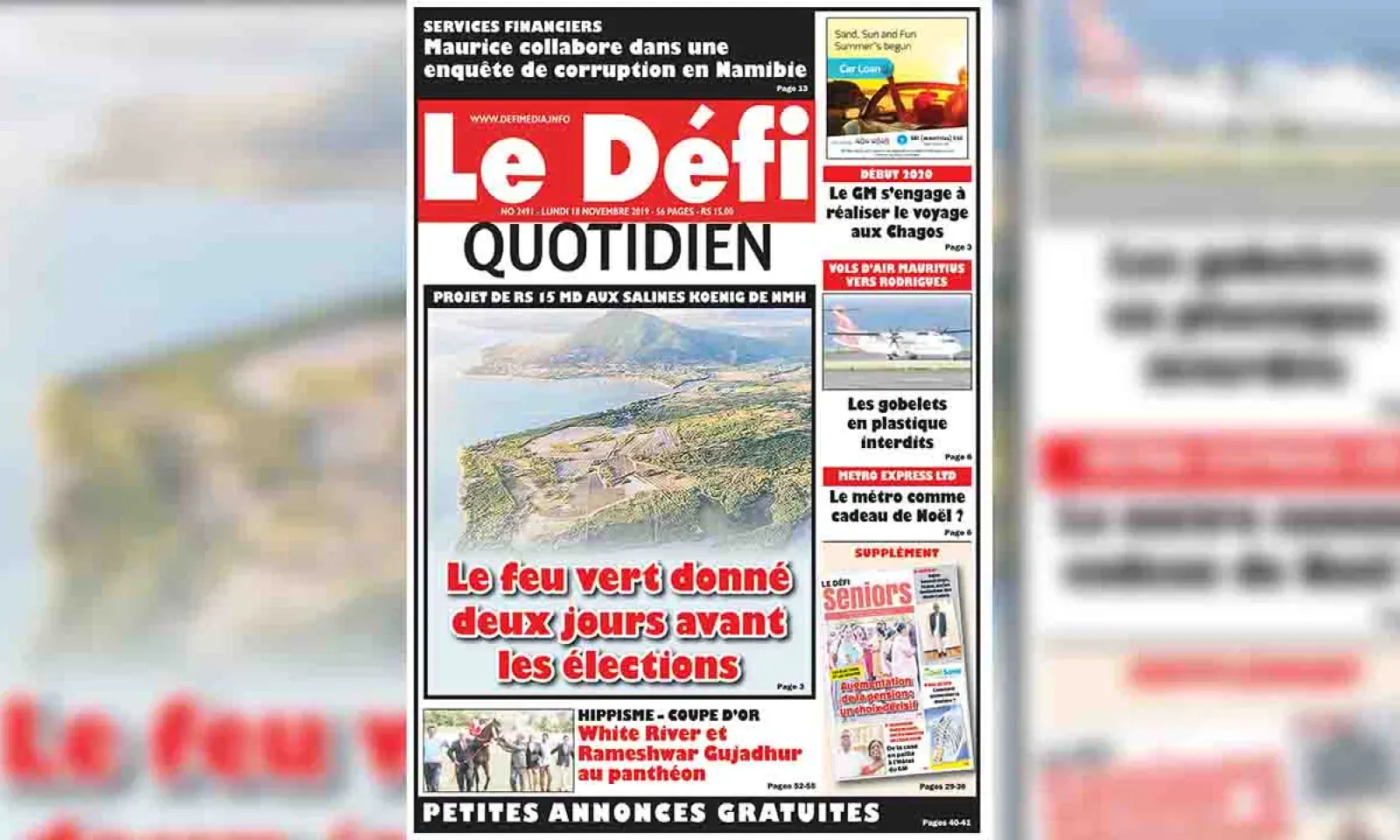 Le ministère de l’Environnement a émis, le 5 novembre, soit à deux jours des législatives, la licence Environmental Impact Assessment à Les Salines PDS, branche de New Mauritius Hotels (NMH), pour la construction de 220 villas de grand luxe et un golf de dix-huit trous pour une somme globale de Rs 15 milliards.