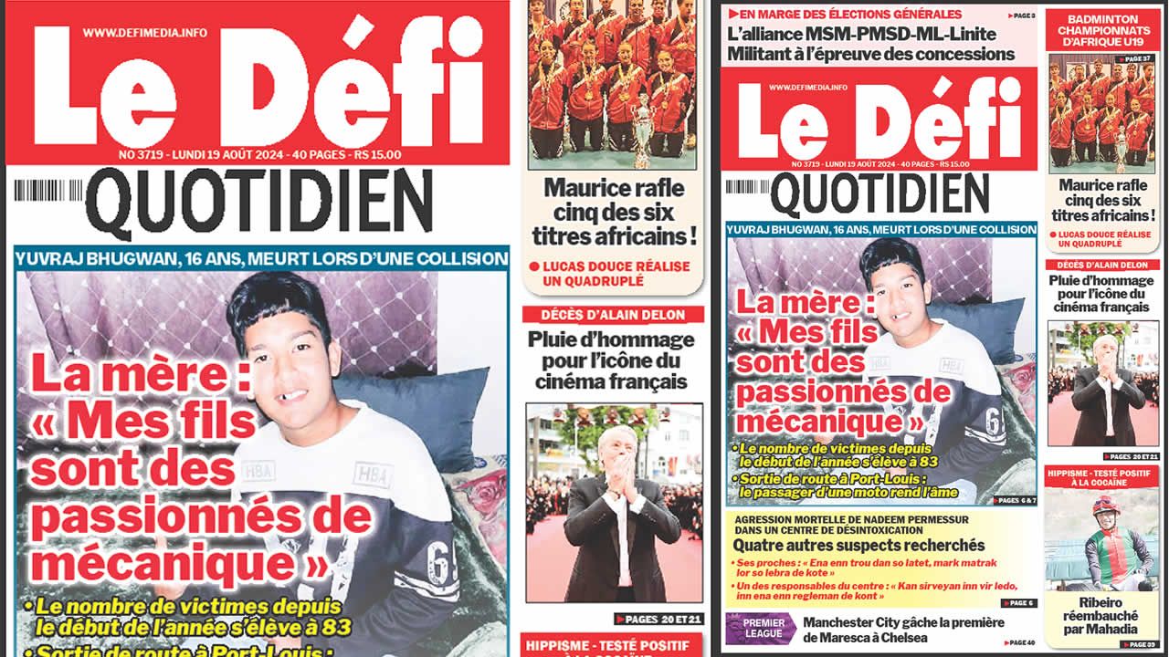 ? Voici la Une du Défi Quotidien. Le journal est en vente à Rs 15 l'exemplaire aux endroits habituels (supermarchés, boutiques, tabagies, superettes). Bonne lecture !