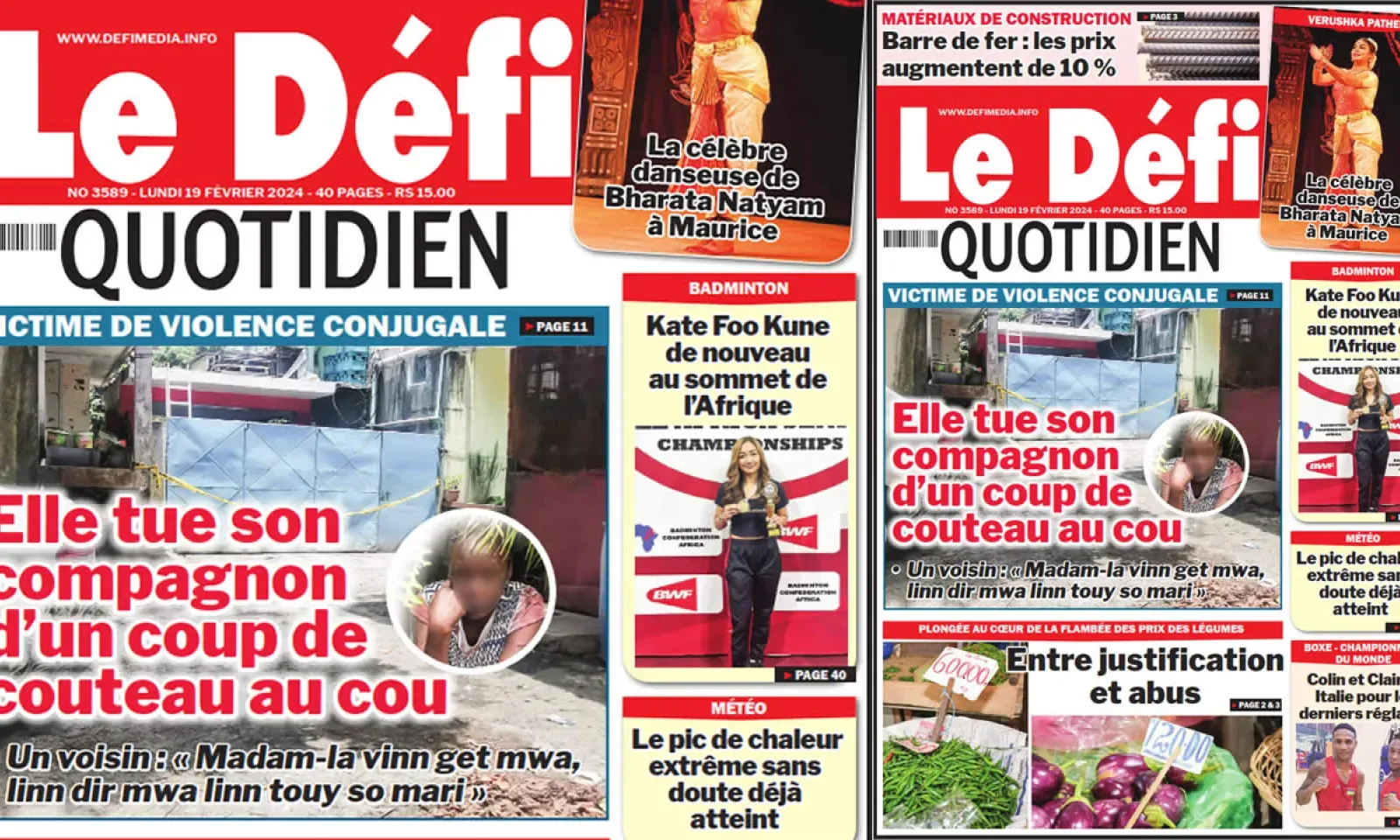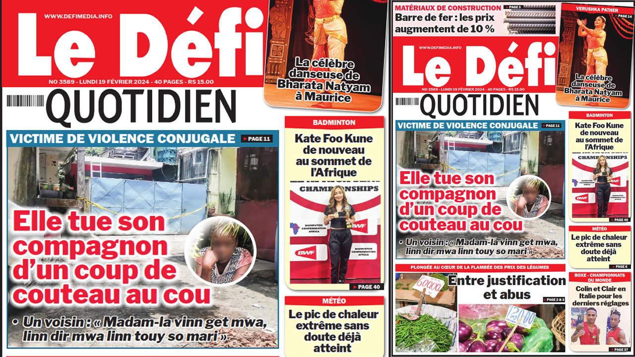 ? Voici la Une du Défi Quotidien. Le journal est en vente à Rs 15 l'exemplaire aux endroits habituels (supermarchés, boutiques, tabagies, superettes). Bonne lecture !