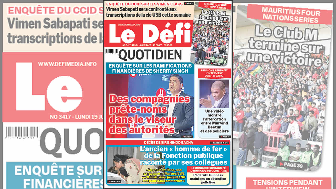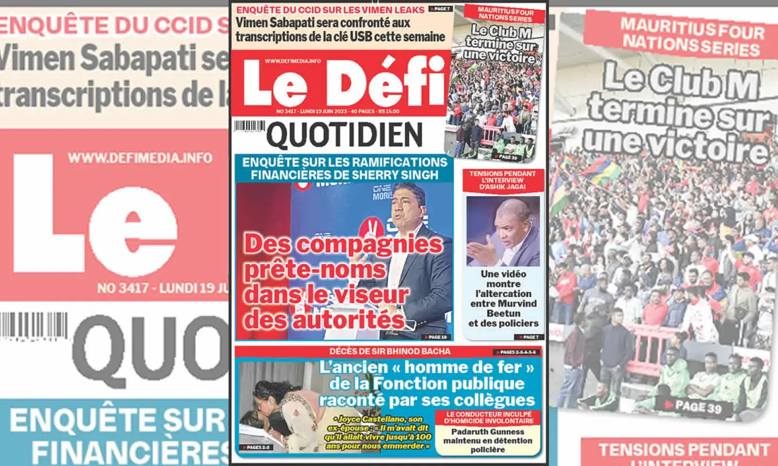 ? Voici la Une du Défi Quotidien. Le journal est en vente à Rs 15 l'exemplaire aux endroits habituels (supermarchés, boutiques, tabagies, superettes). Bonne lecture !