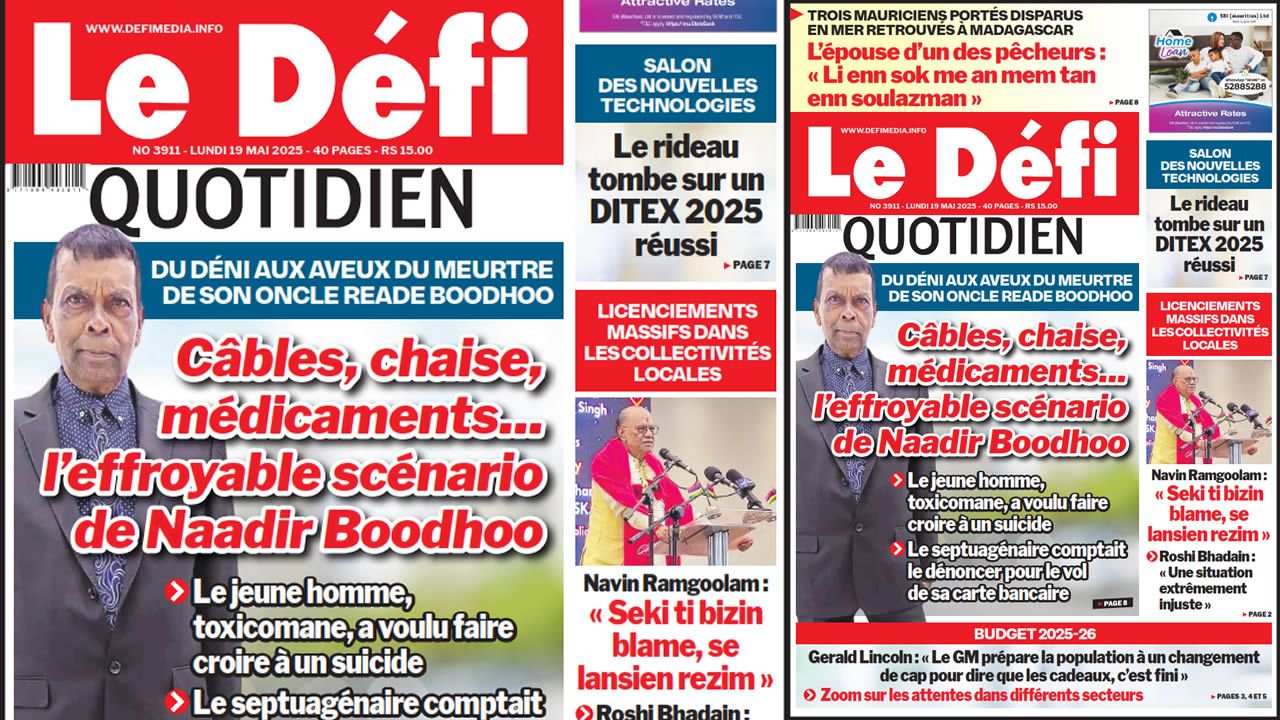 ? Voici la Une du Défi Quotidien. Le journal est en vente à Rs 15 l'exemplaire aux endroits habituels (supermarchés, boutiques, tabagies, superettes). Bonne lecture !