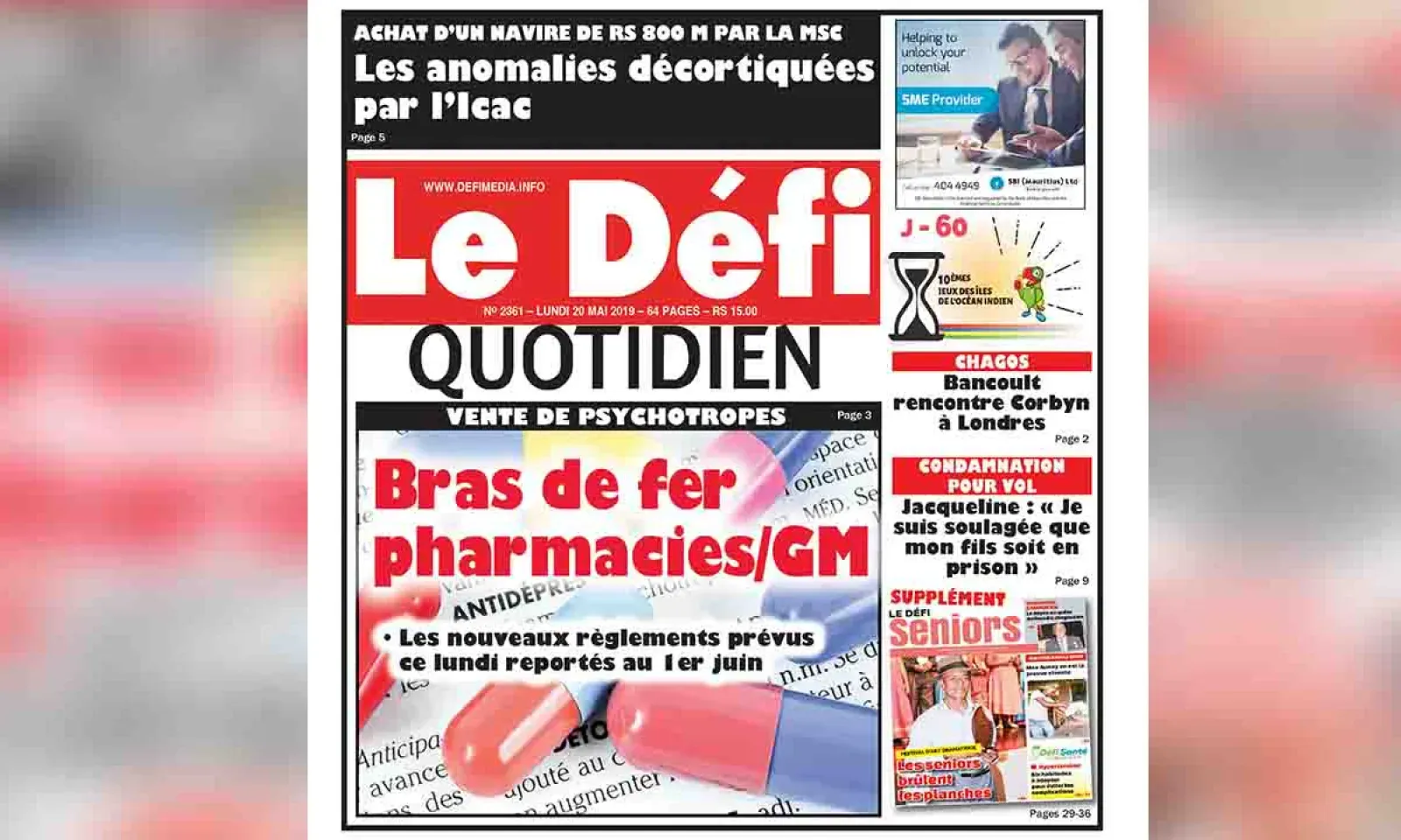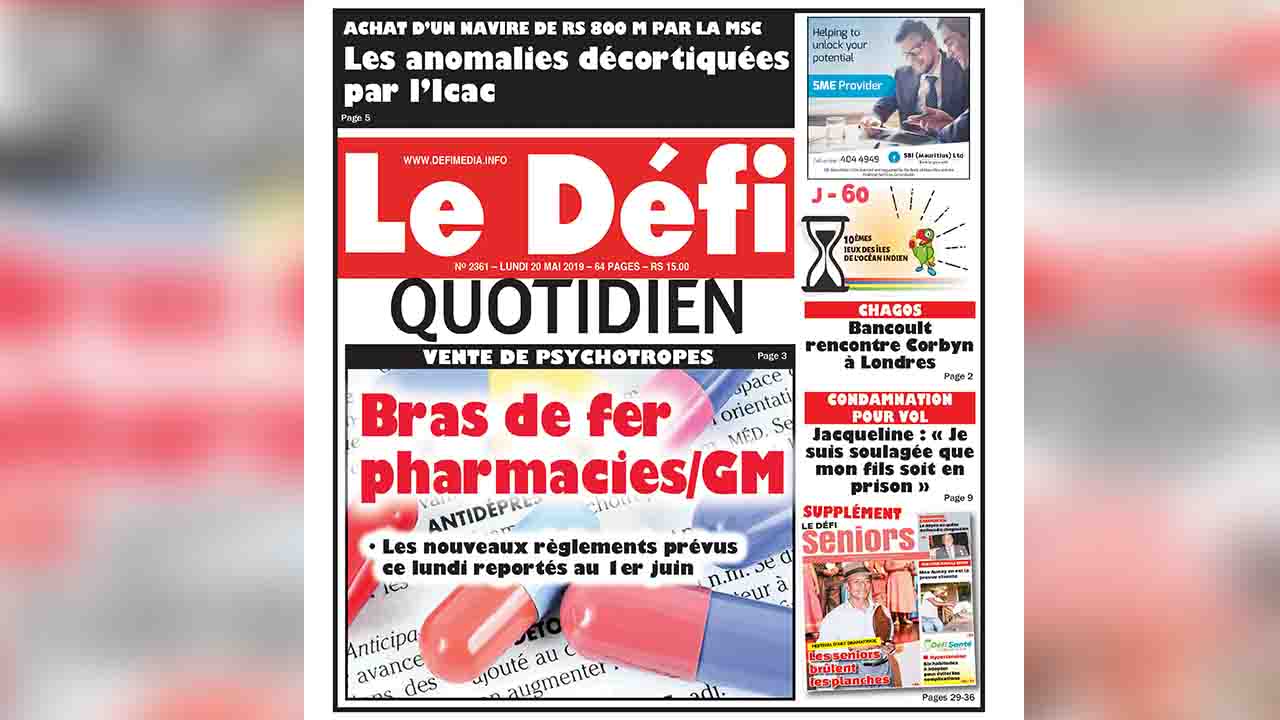Voici la Une du Défi Quotidien de ce lundi 20 mai 2019