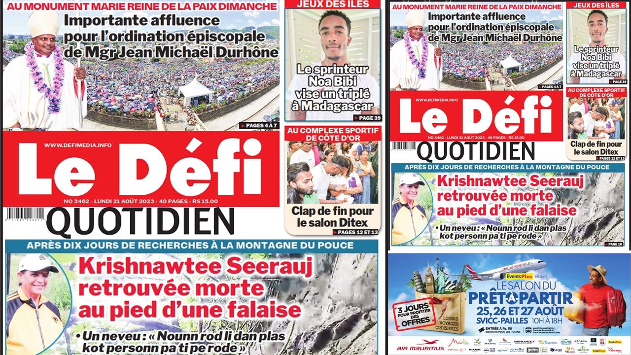 Voici la une du Défi Quotidien de ce Lundi 21 Août 2023