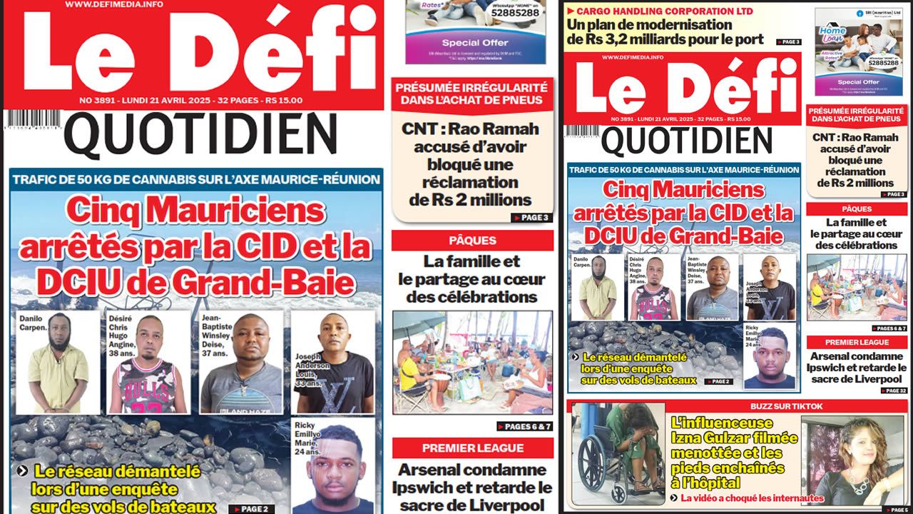 ? Voici la Une du Défi Quotidien. Le journal est en vente à Rs 15 l'exemplaire aux endroits habituels (supermarchés, boutiques, tabagies, superettes). Bonne lecture !