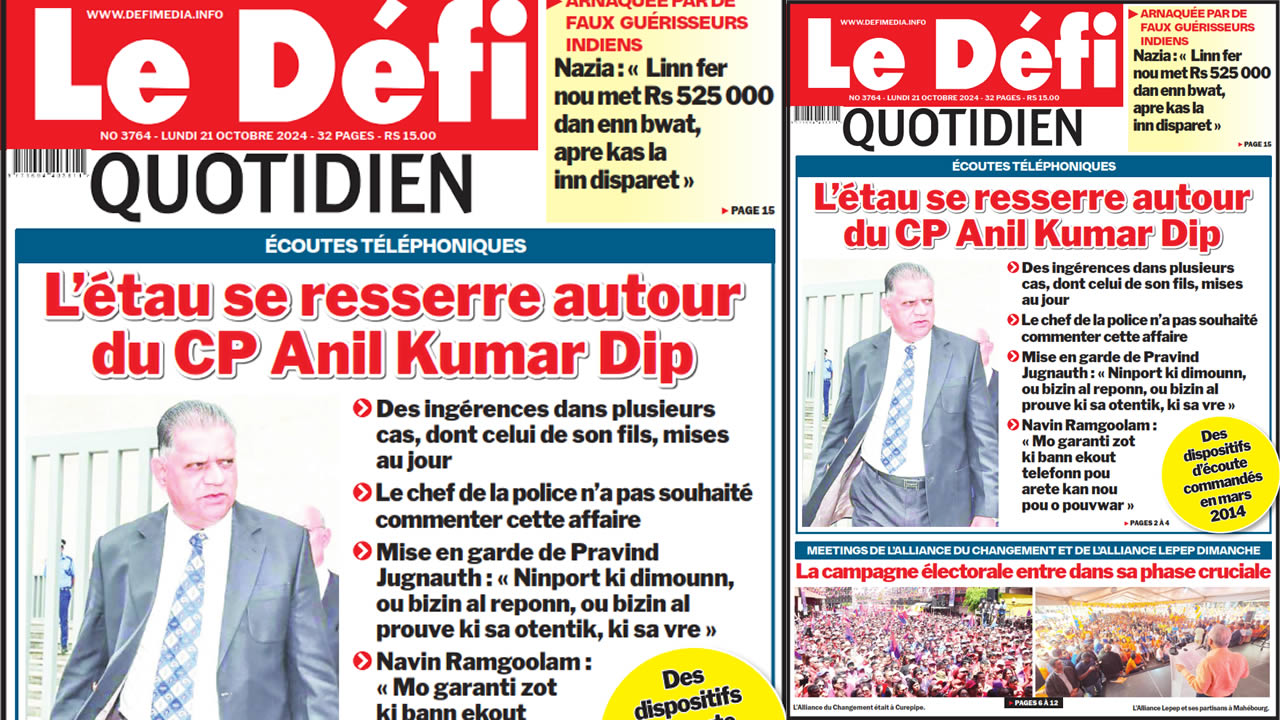 ? Voici la Une du Défi Quotidien. Le journal est en vente à Rs 15 l'exemplaire aux endroits habituels (supermarchés, boutiques, tabagies, superettes). Bonne lecture !