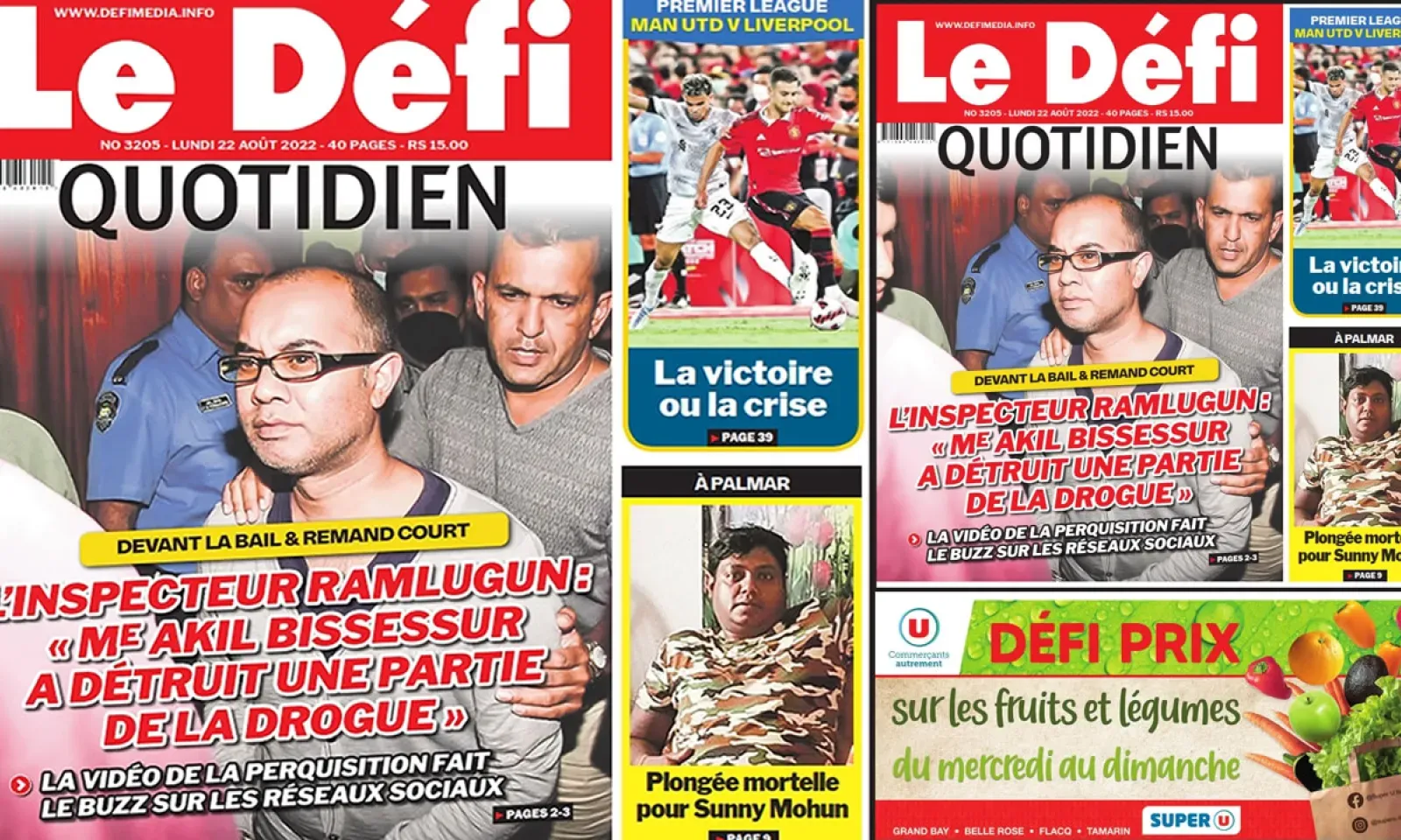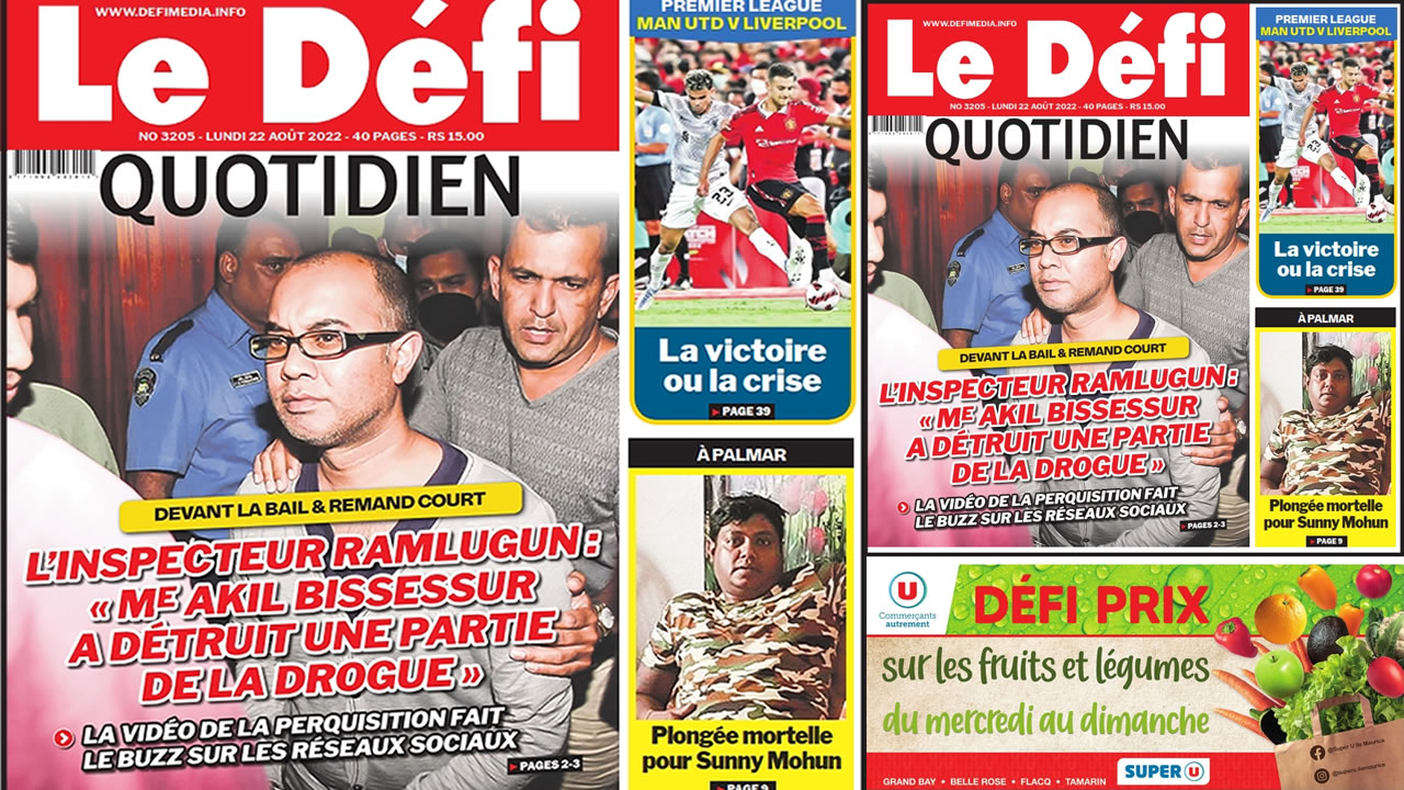 ? Voici la Une du Défi Quotidien. Le journal est en vente à Rs 15 l'exemplaire aux endroits habituels (supermarchés, boutiques, tabagies, superettes). Bonne lecture !