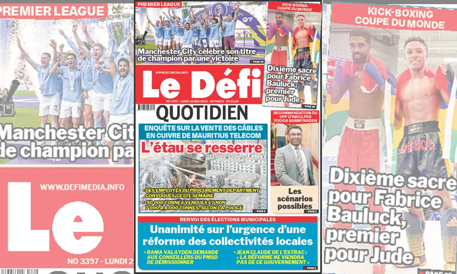 Voici la une du Défi Quotidien de ce Lundi 22 Mai 2023