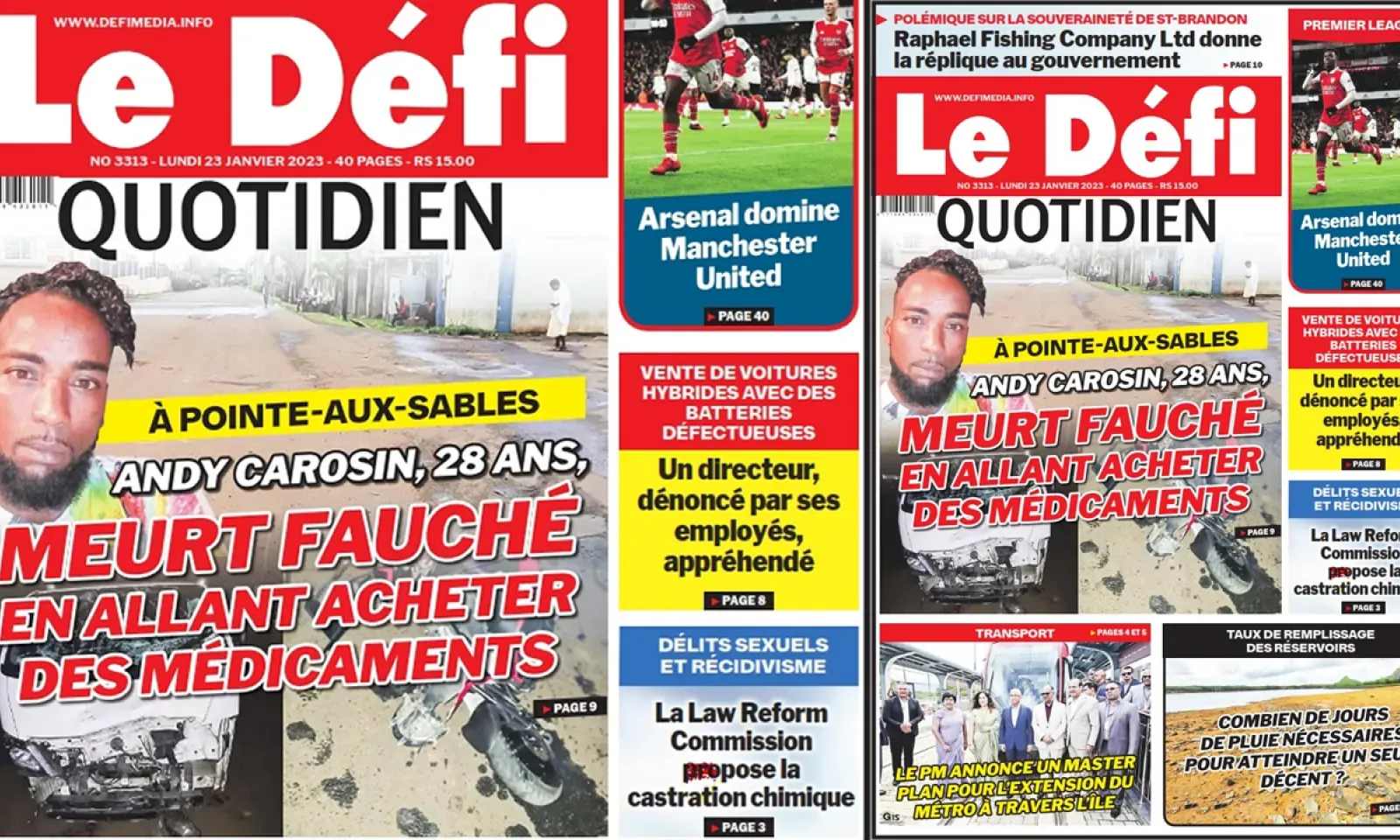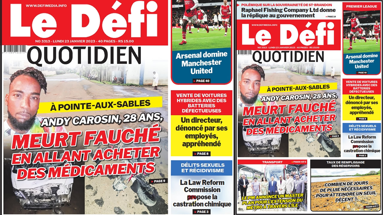 ? Voici la Une du Défi Quotidien. Le journal est en vente à Rs 15 l'exemplaire aux endroits habituels (supermarchés, boutiques, tabagies, superettes). Bonne lecture !