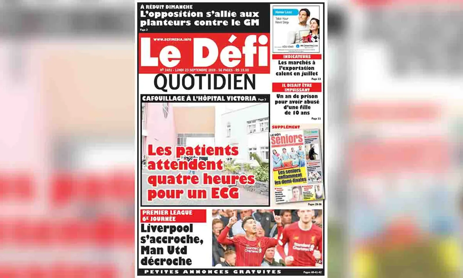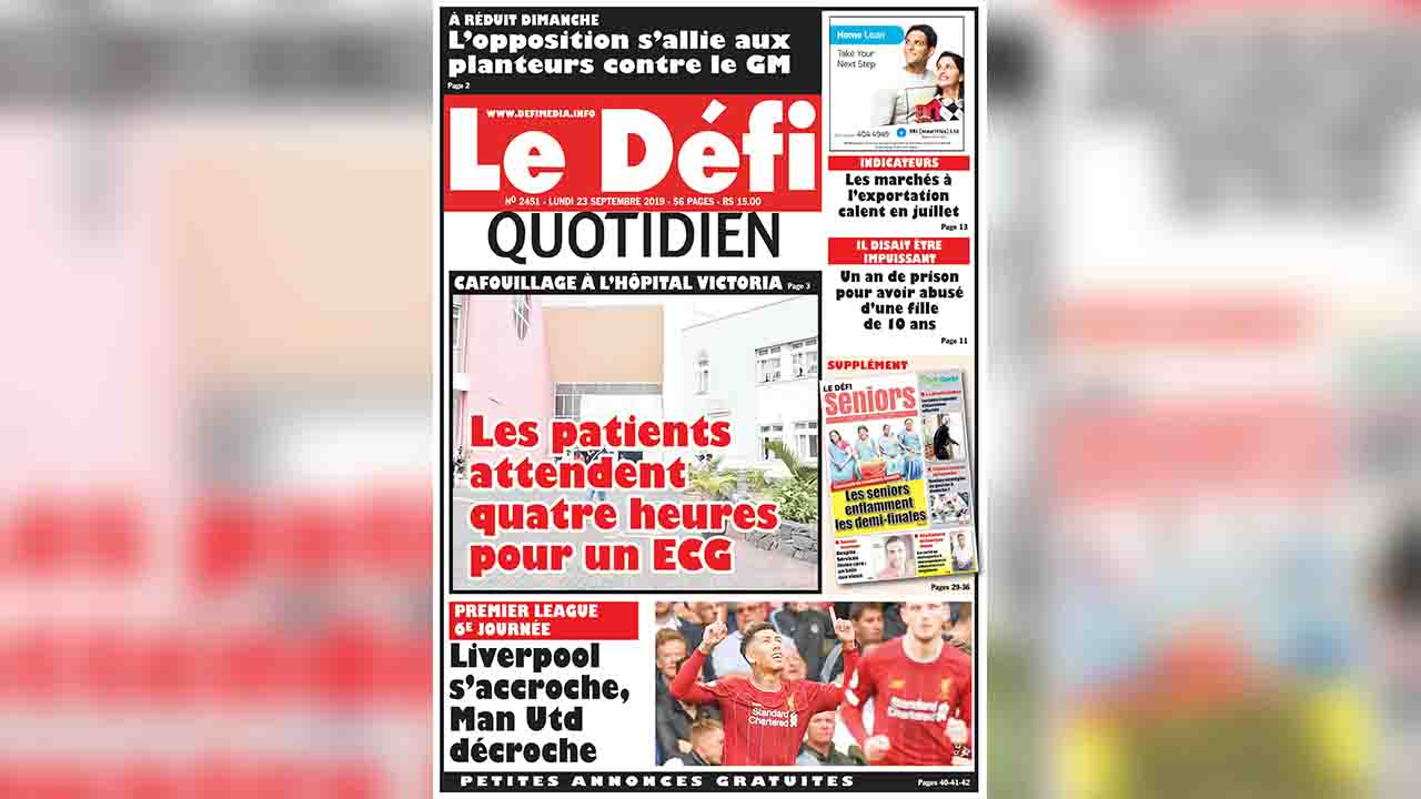 Voici la Une du Defi Quotidien de ce lundi 23 septembre 2019