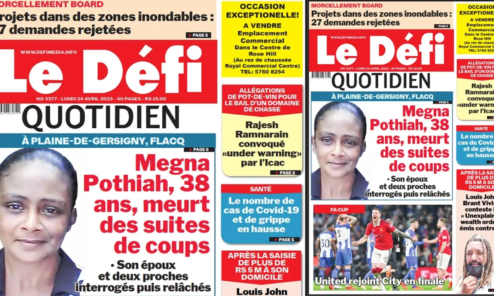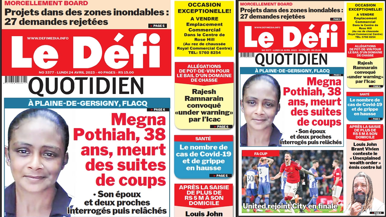 ? Voici la Une du Défi Quotidien. Le journal est en vente à Rs 15 l'exemplaire aux endroits habituels (supermarchés, boutiques, tabagies, superettes). Bonne lecture !