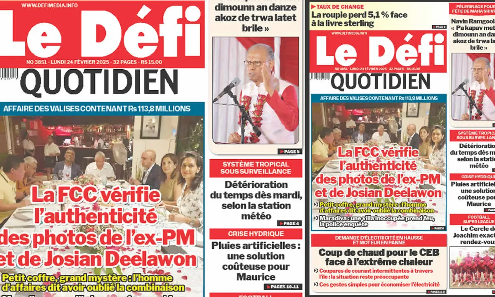 ? Voici la Une du Défi Quotidien. Le journal est en vente à Rs 15 l'exemplaire aux endroits habituels (supermarchés, boutiques, tabagies, superettes). Bonne lecture !