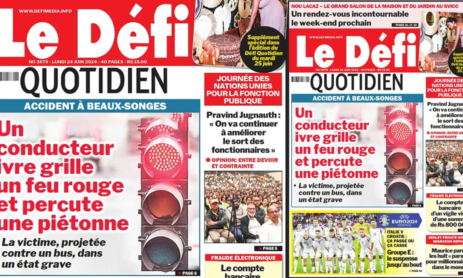 ? Voici la Une du Défi Quotidien. Le journal est en vente à Rs 15 l'exemplaire aux endroits habituels (supermarchés, boutiques, tabagies, superettes). Bonne lecture !