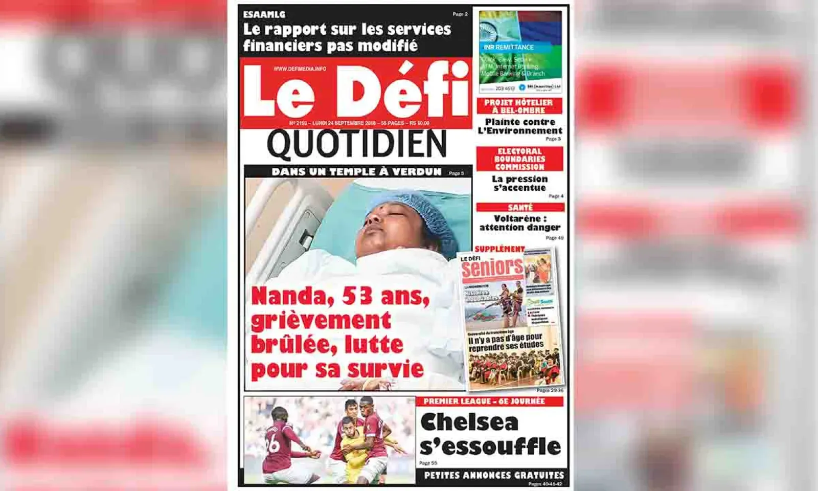 Voici la Une du Défi Quotidien de ce lundi 24 septembre 2018