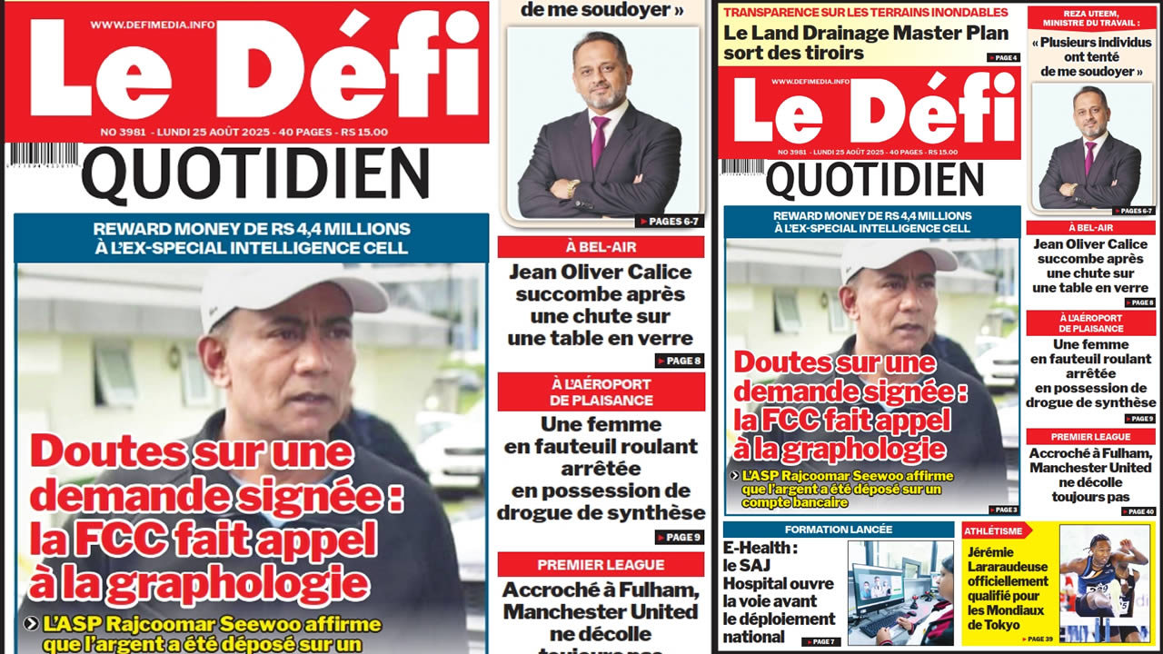 ? Voici la Une du Défi Quotidien. Le journal est en vente à Rs 15 l'exemplaire aux endroits habituels (supermarchés, boutiques, tabagies, superettes). Bonne lecture !