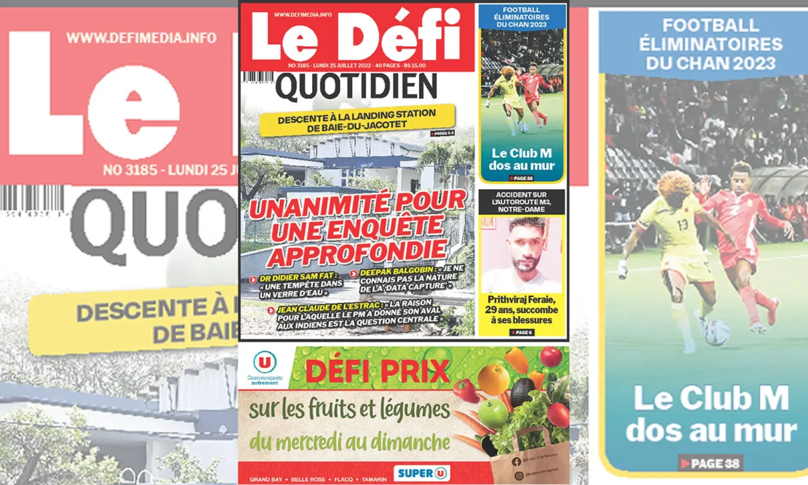 Voici la une du Défi Quotidien de ce lundi 25 Juillet 2022