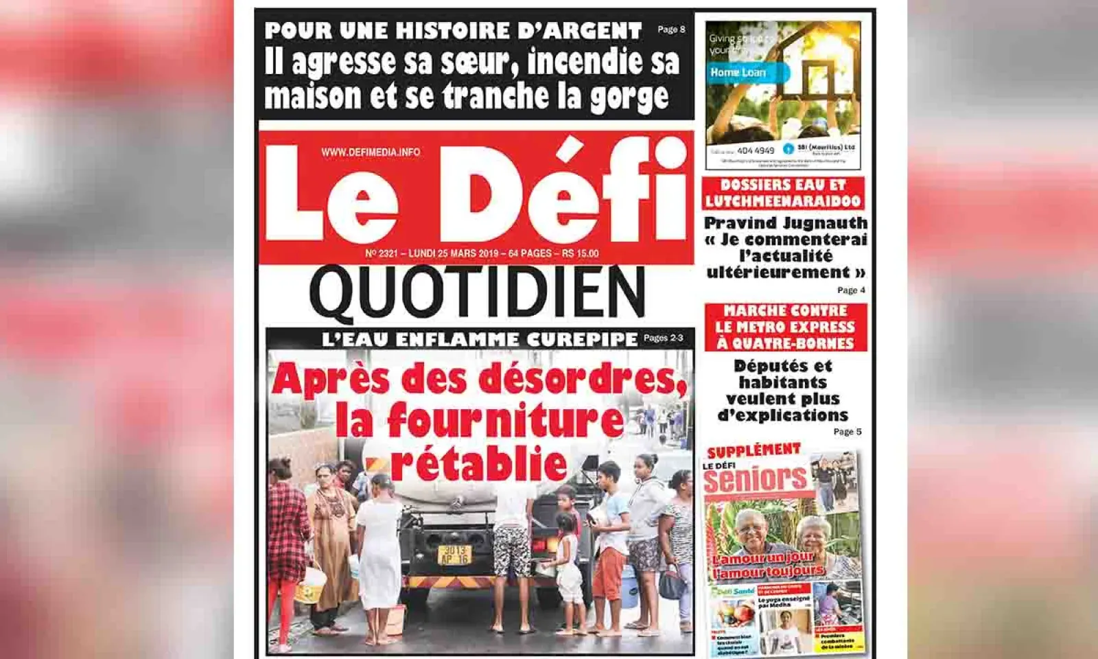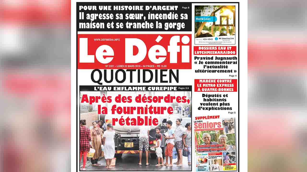 Problème d’eau et démission de Lutchmeenaraidoo