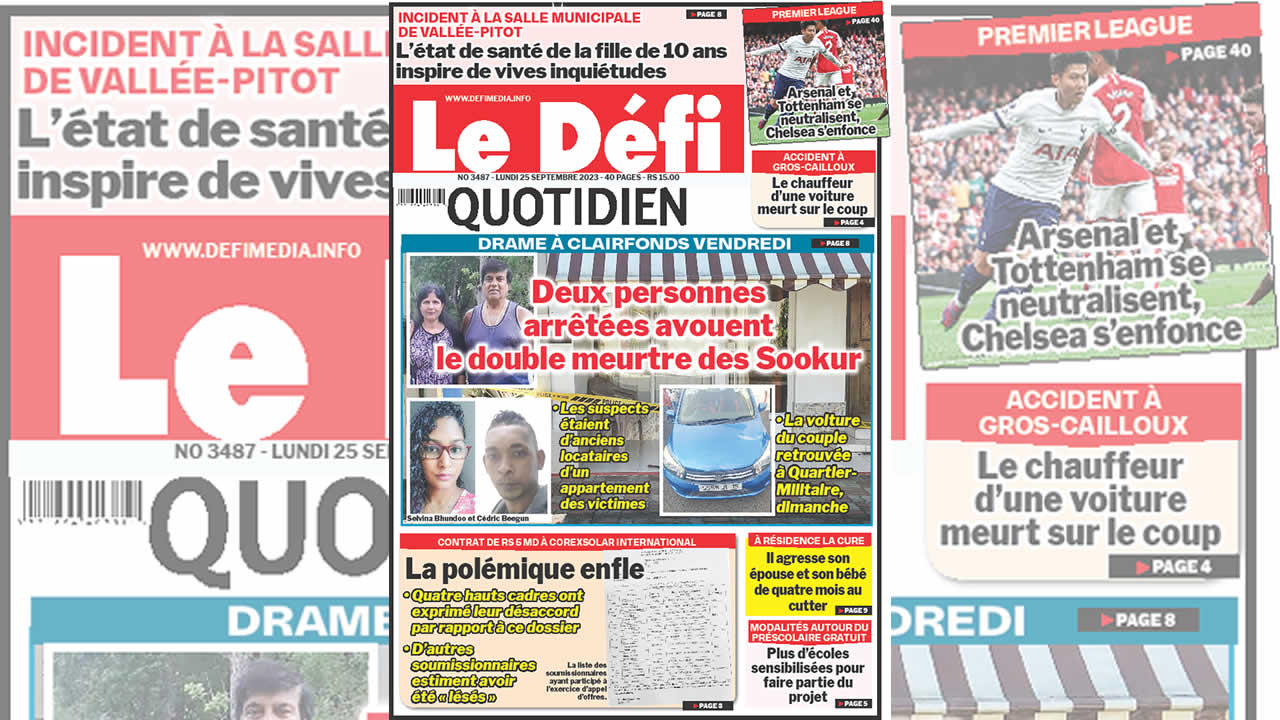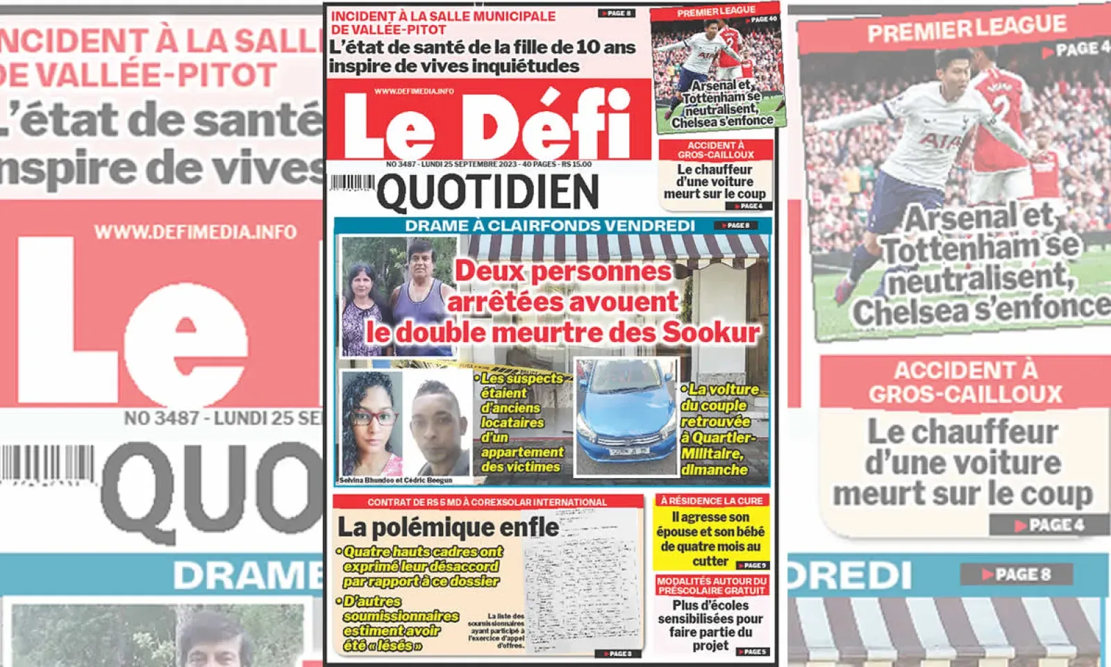 Voici la une du Défi Quotidien de ce Lundi 25 Septembre 2023