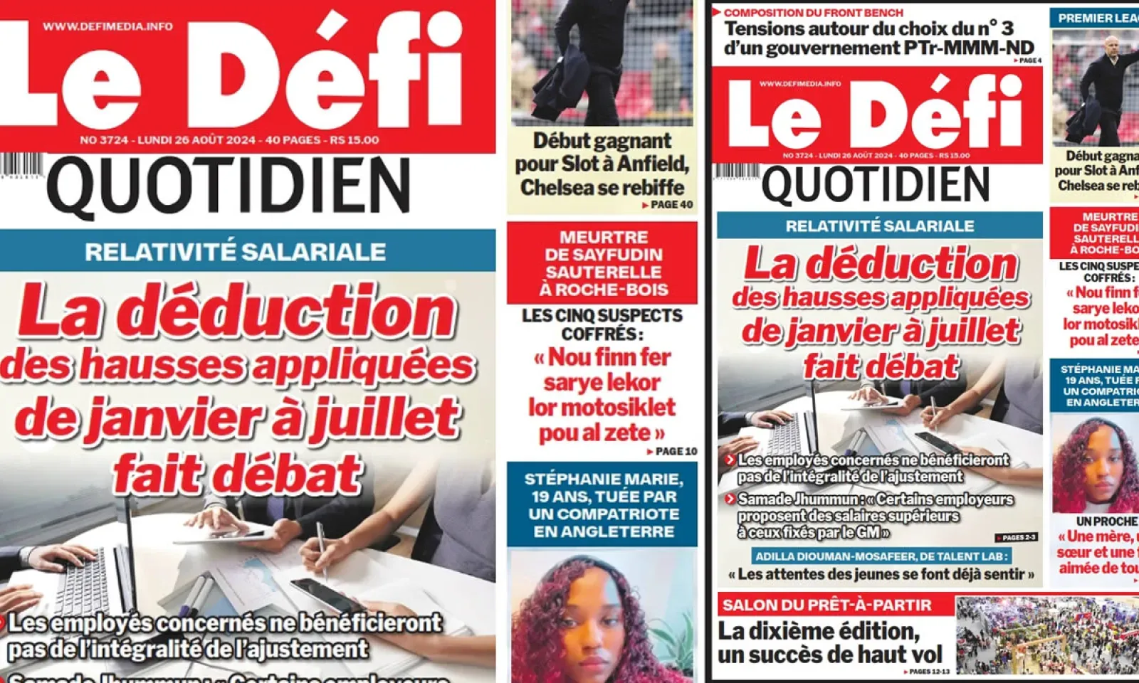 Voici la une du Défi Quotidien de ce Lundi 26 Août 2024