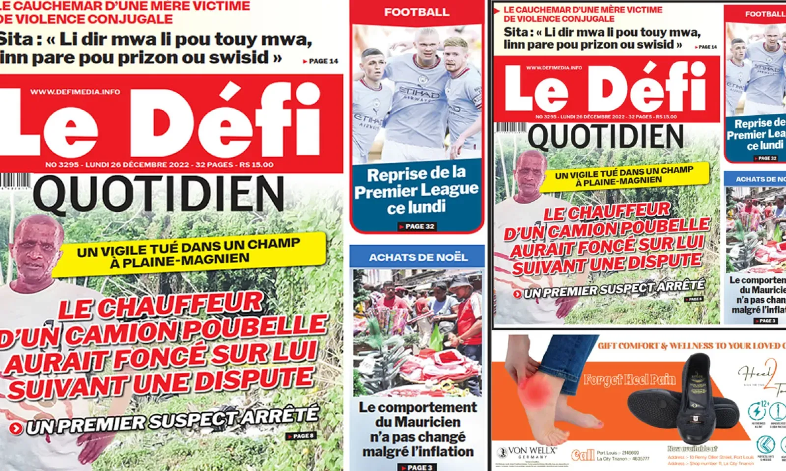 Voici la une du Défi Quotidien de ce lundi 26 Décembre 2022