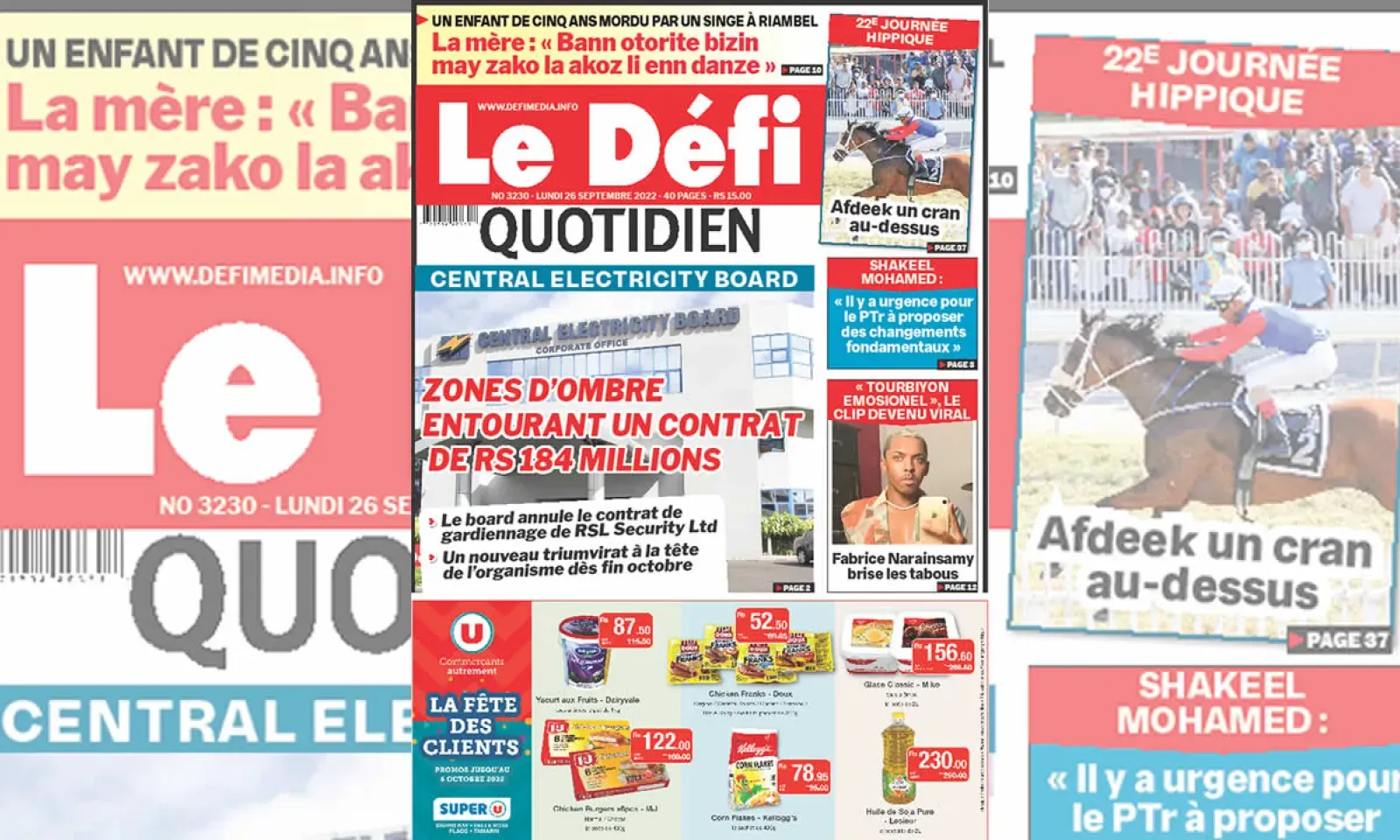 Voici la une du Défi Quotidien de ce lundi 26 Septembre 2022