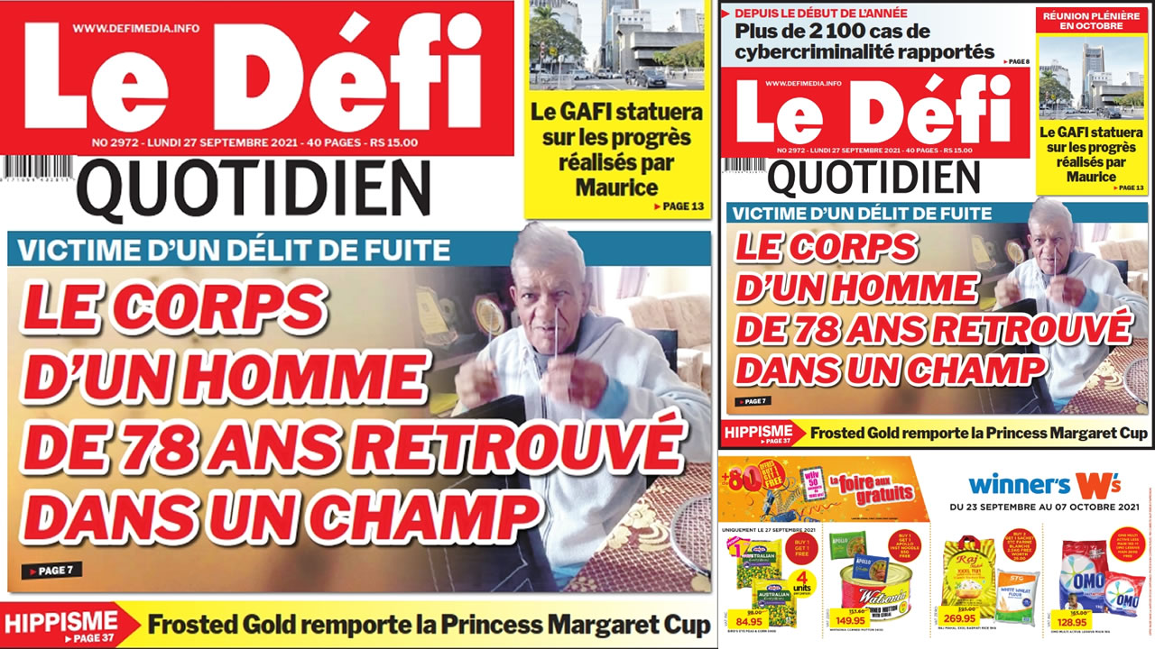 Voici la Une du Défi Quotidien de ce lundi 27 Septembre 2021