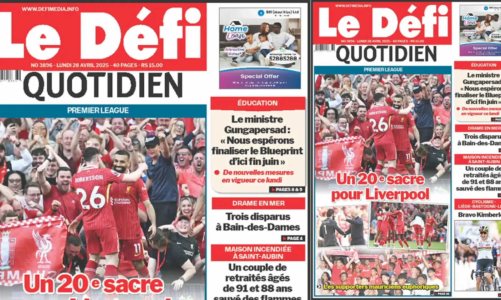 ? Voici la Une du Défi Quotidien. Le journal est en vente à Rs 15 l'exemplaire aux endroits habituels (supermarchés, boutiques, tabagies, superettes). Bonne lecture !