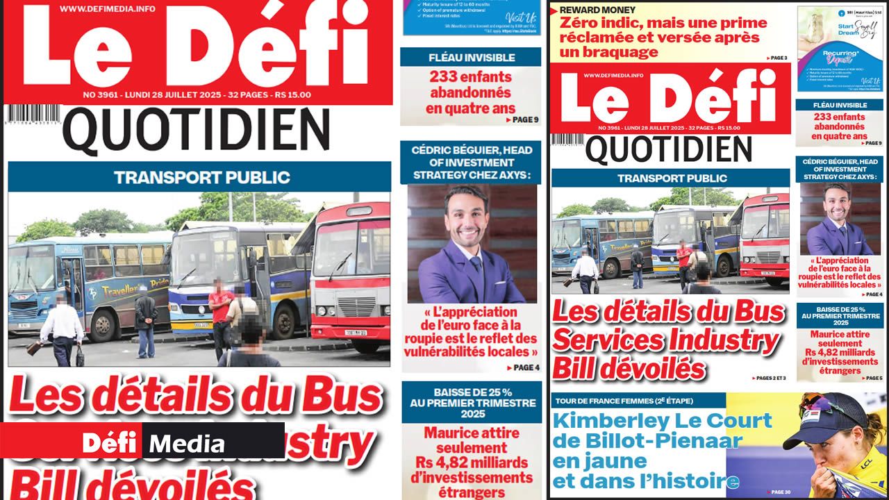 ? Voici la Une du Défi Quotidien. Le journal est en vente à Rs 15 l'exemplaire aux endroits habituels (supermarchés, boutiques, tabagies, superettes). Bonne lecture !