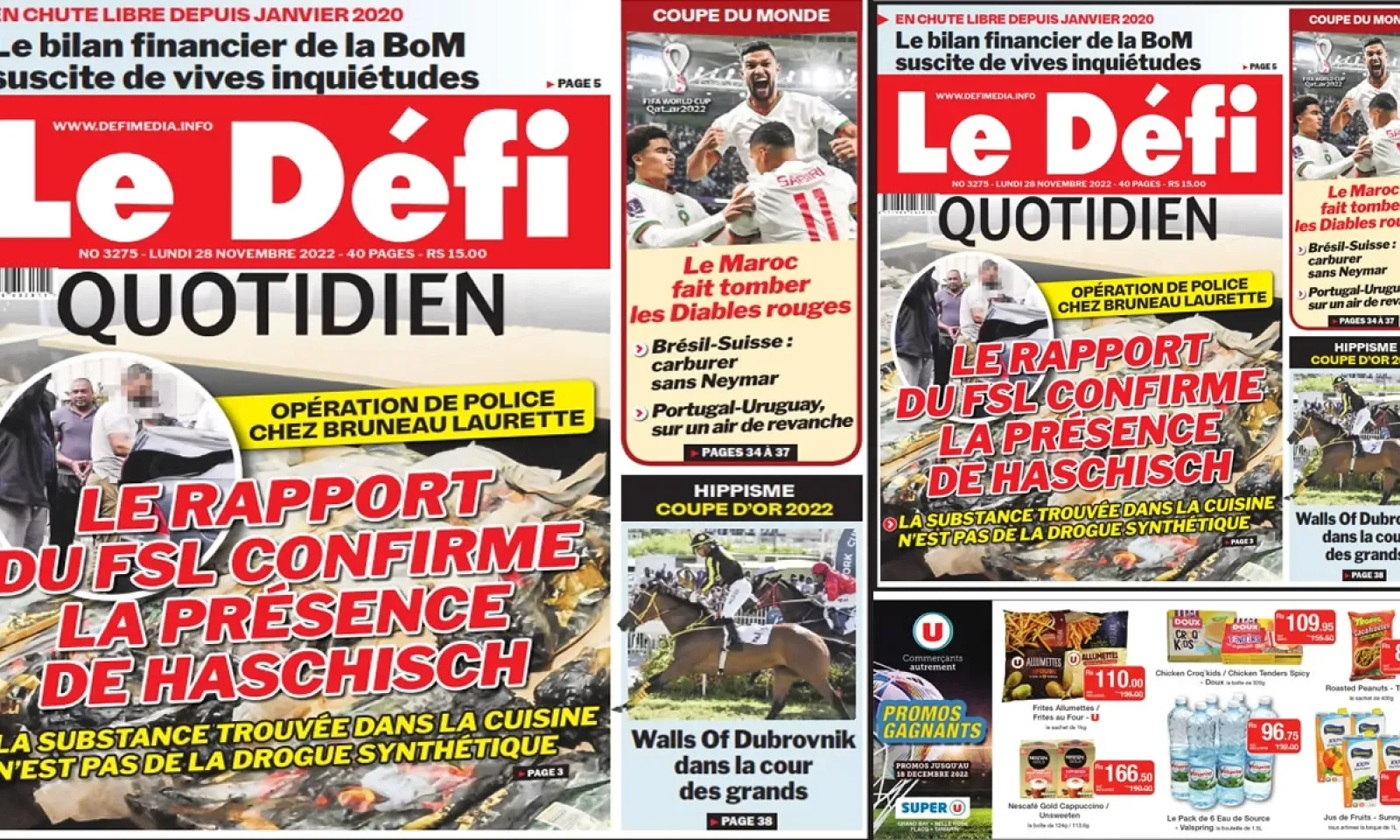 ? Voici la Une du Défi Quotidien. Le journal est en vente à Rs 15 l'exemplaire aux endroits habituels (supermarchés, boutiques, tabagies, superettes). Bonne lecture !