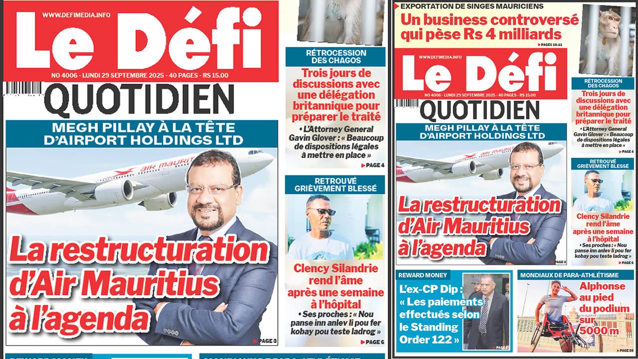 ? Voici la Une du Défi Quotidien. Le journal est en vente à Rs 15 l'exemplaire aux endroits habituels (supermarchés, boutiques, tabagies, superettes). Bonne lecture !