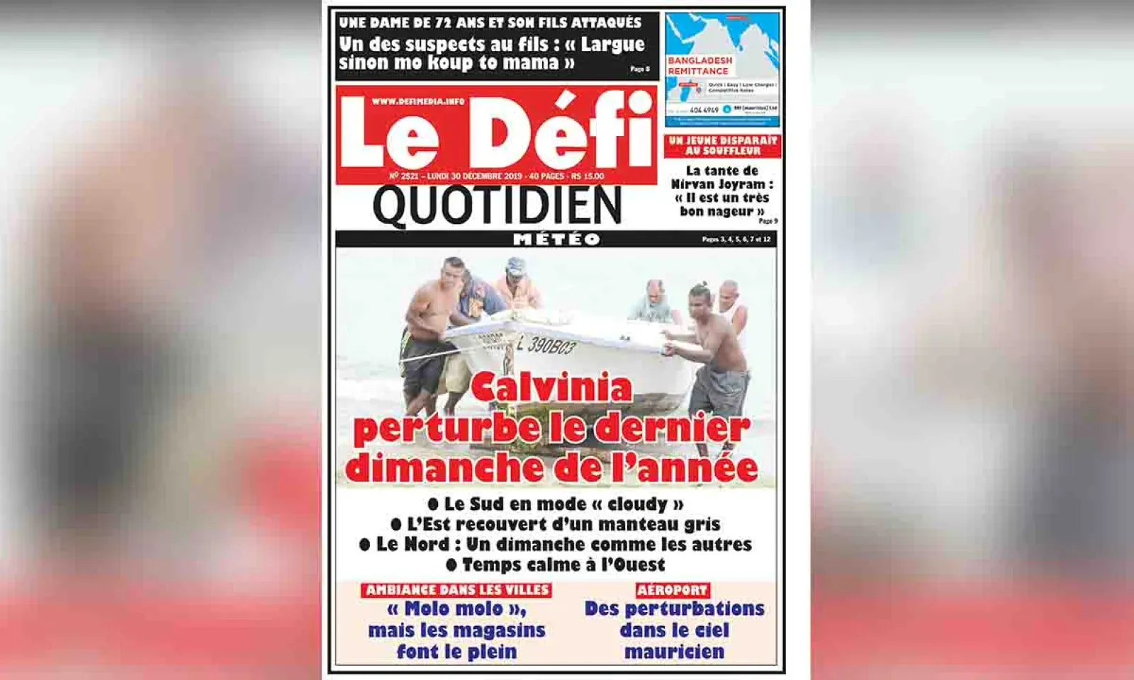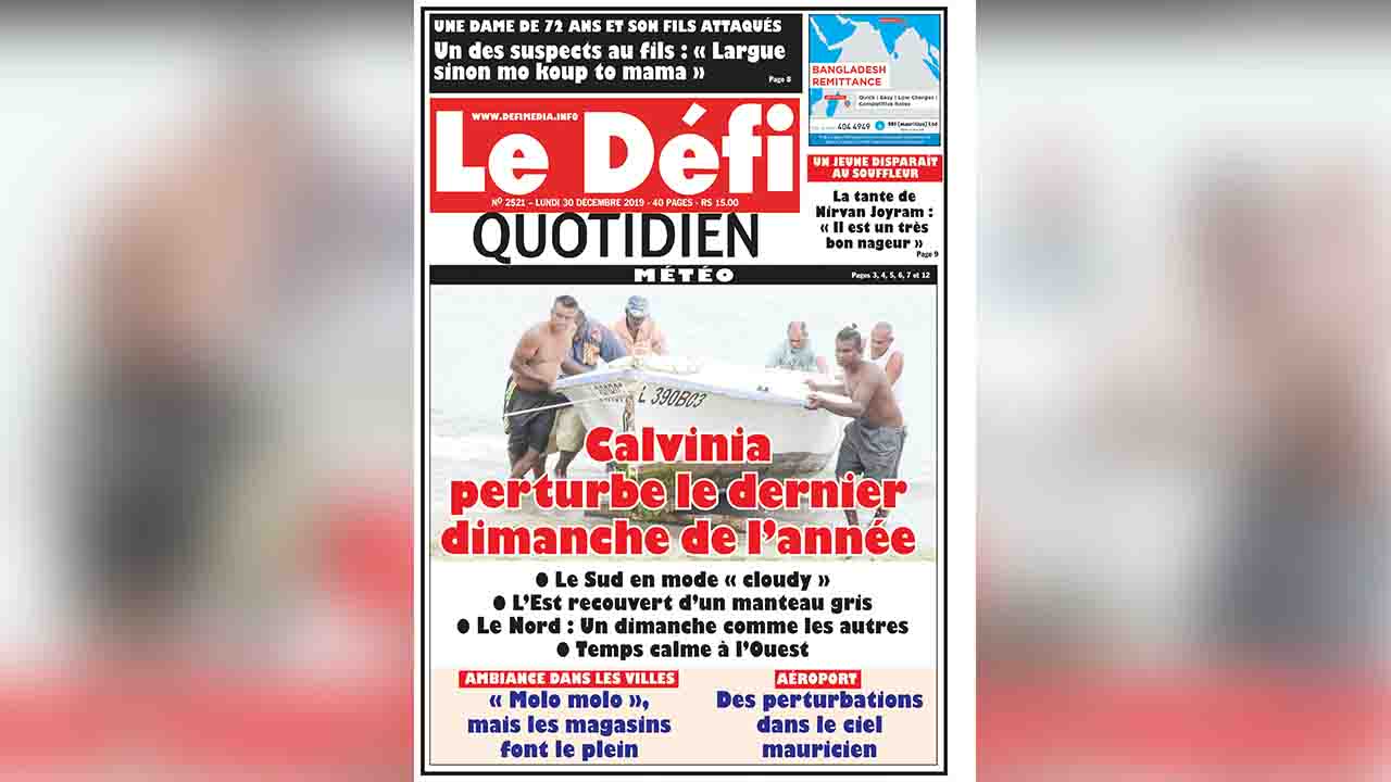 Voici la Une du Défi Quotidien de ce lundi 30 décembre 2019