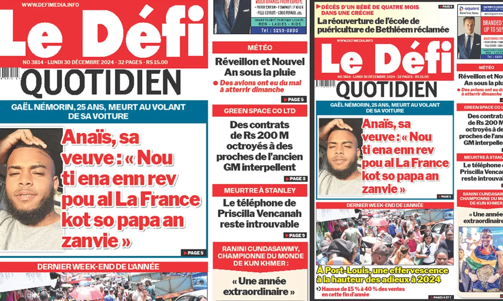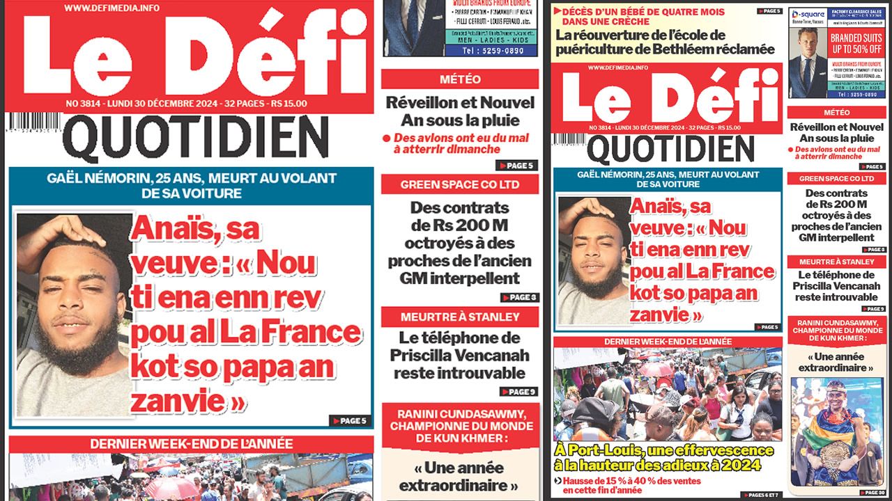 Voici la une du Défi Quotidien de ce Lundi 30 Décembre 2024