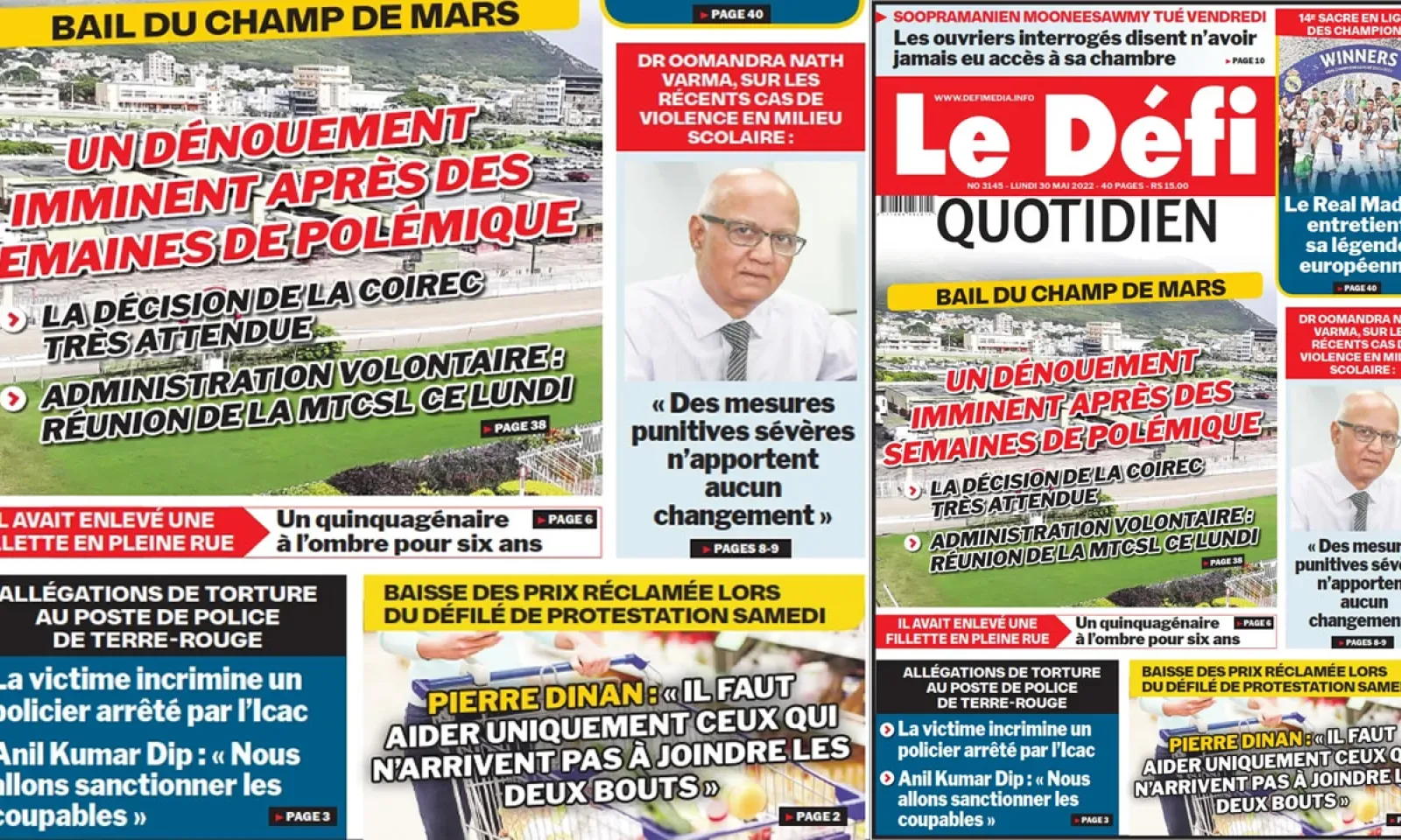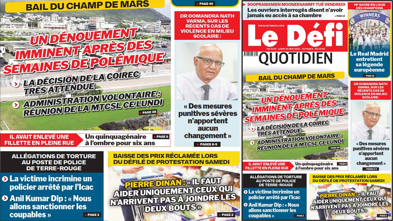 ? Voici la Une du Défi Quotidien. Le journal est en vente à Rs 15 l'exemplaire aux endroits habituels (supermarchés, boutiques, tabagies, superettes). Bonne lecture !