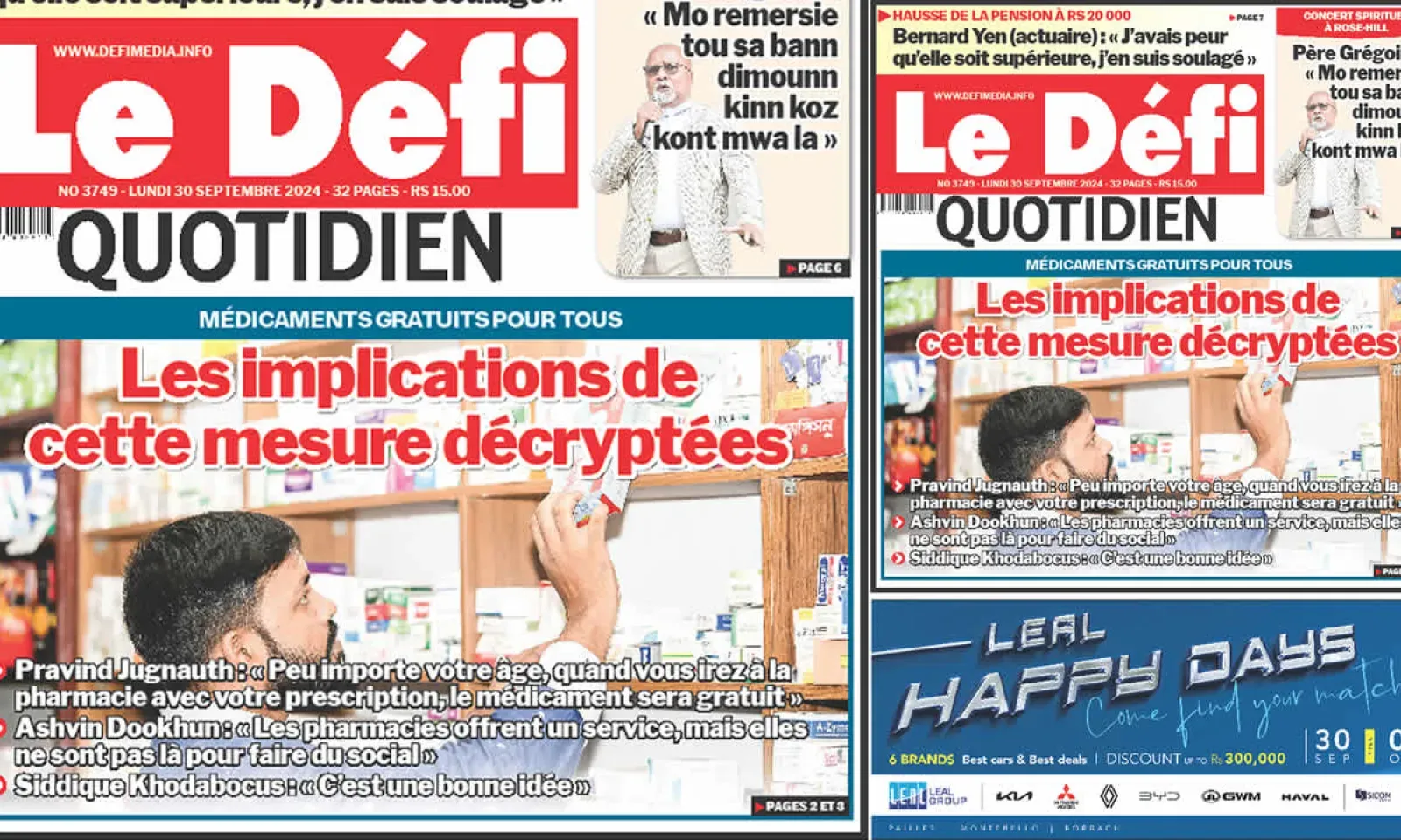 ? Voici la Une du Défi Quotidien. Le journal est en vente à Rs 15 l'exemplaire aux endroits habituels (supermarchés, boutiques, tabagies, superettes). Bonne lecture !