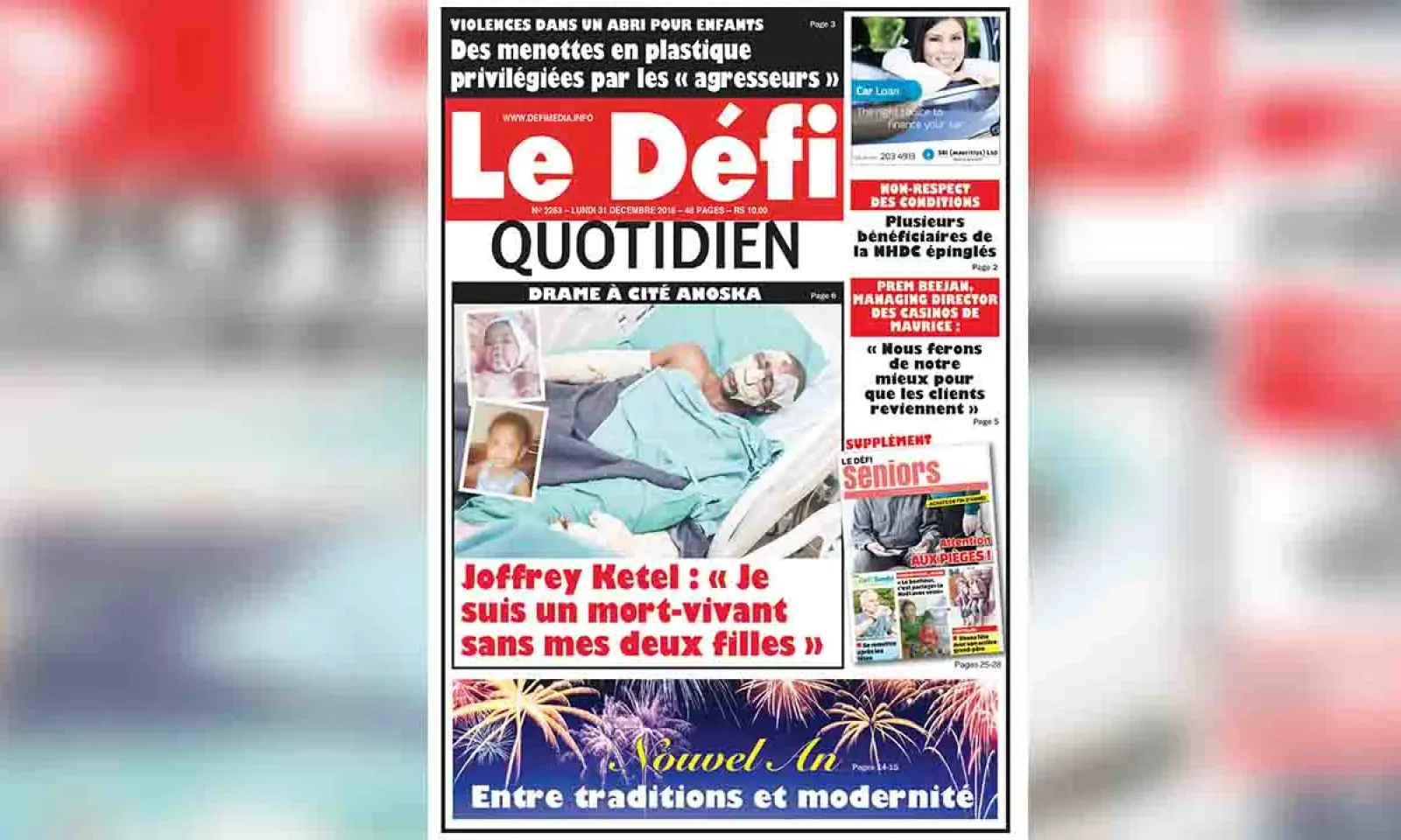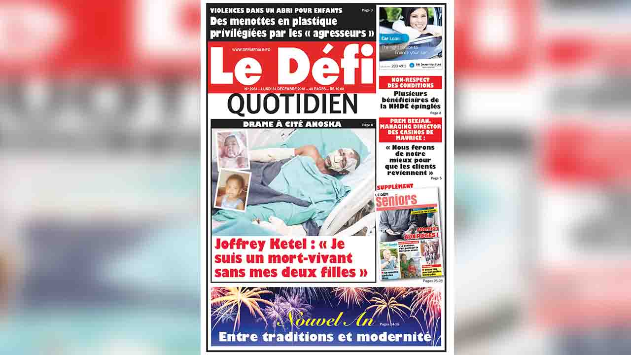 Voici la Une du Defi Quotidien de ce lundi 31 décembre 2018