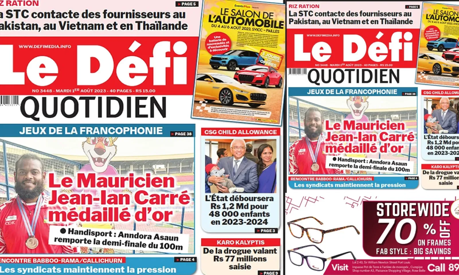 Voici la une du Défi Quotidien de ce Mardi 01 Août 2023