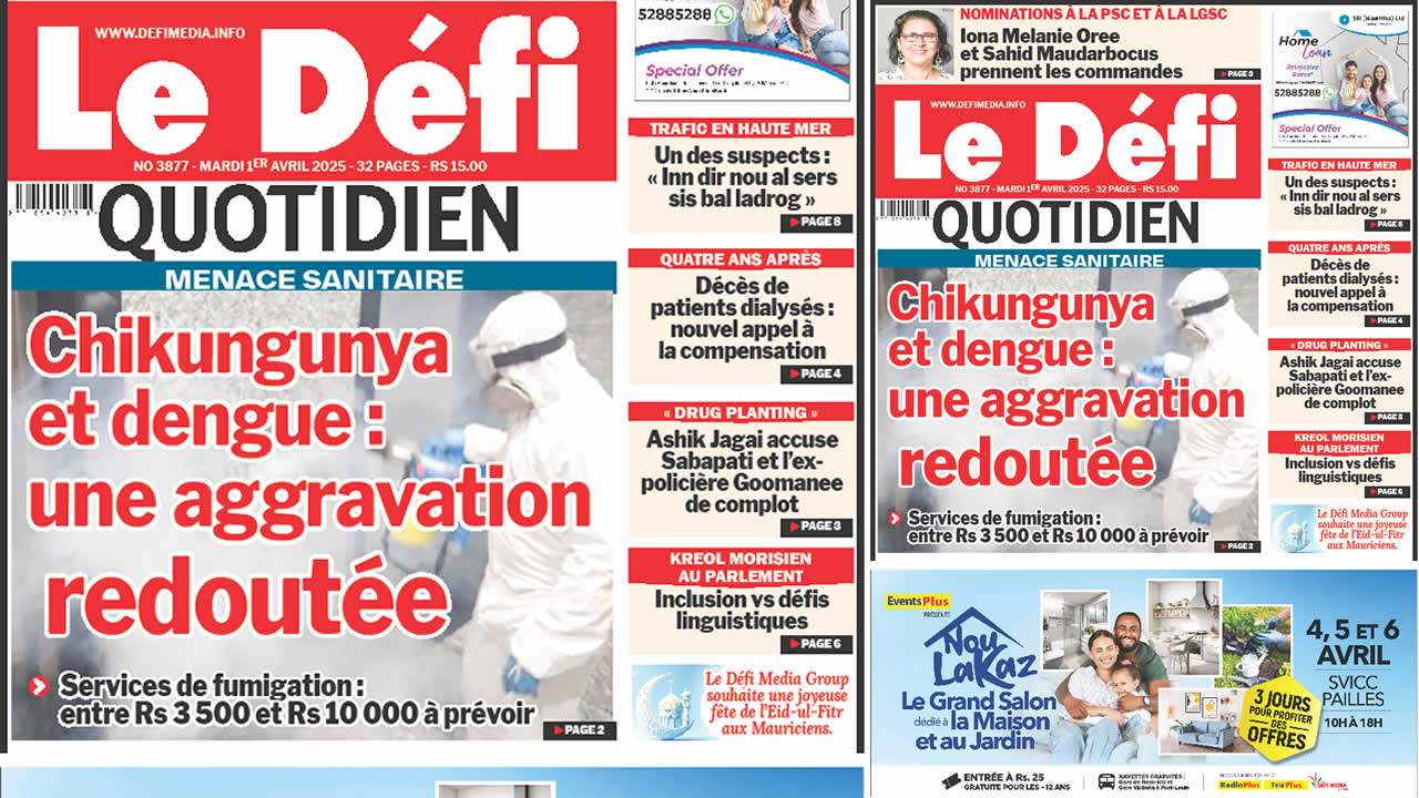 ? Voici la Une du Défi Quotidien. Le journal est en vente à Rs 15 l'exemplaire aux endroits habituels (supermarchés, boutiques, tabagies, superettes). Bonne lecture !