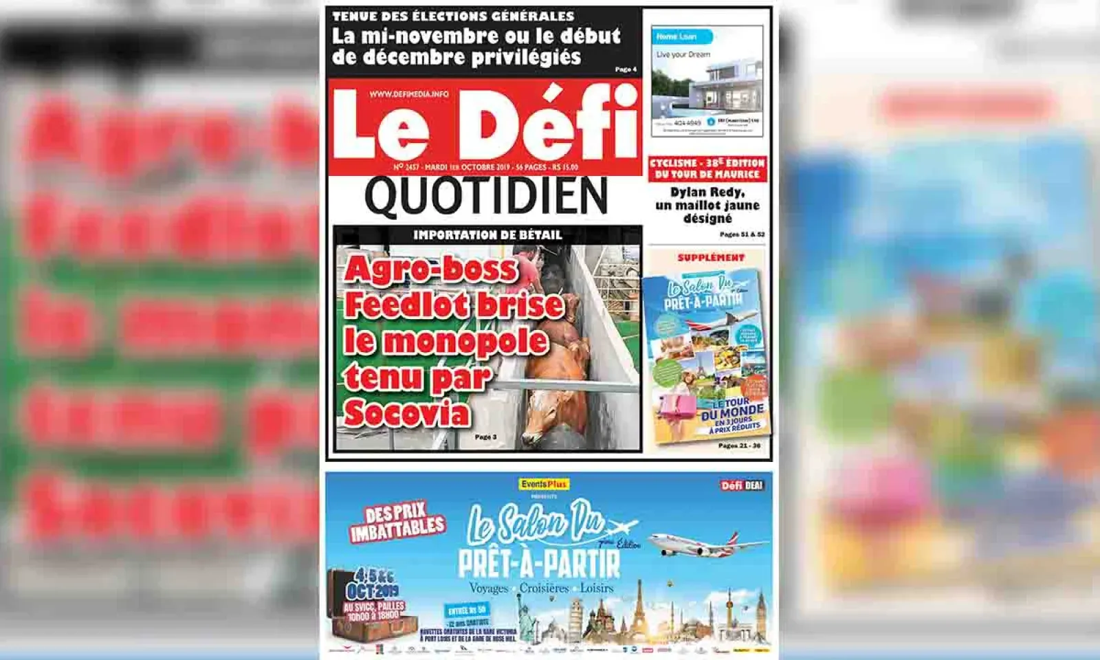 Voici la Une du Defi Quotidien de ce mardi 01 octobre 2019