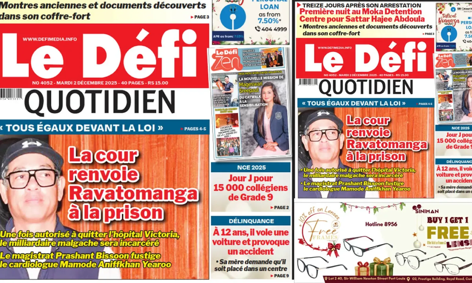 Image Voici la Une du Défi Quotidien. Le journal est en vente à Rs 15 l'exemplaire aux endroits habituels (supermarchés, boutiques, tabagies, superettes). Bonne lecture ! Publicité View the discussion thread.