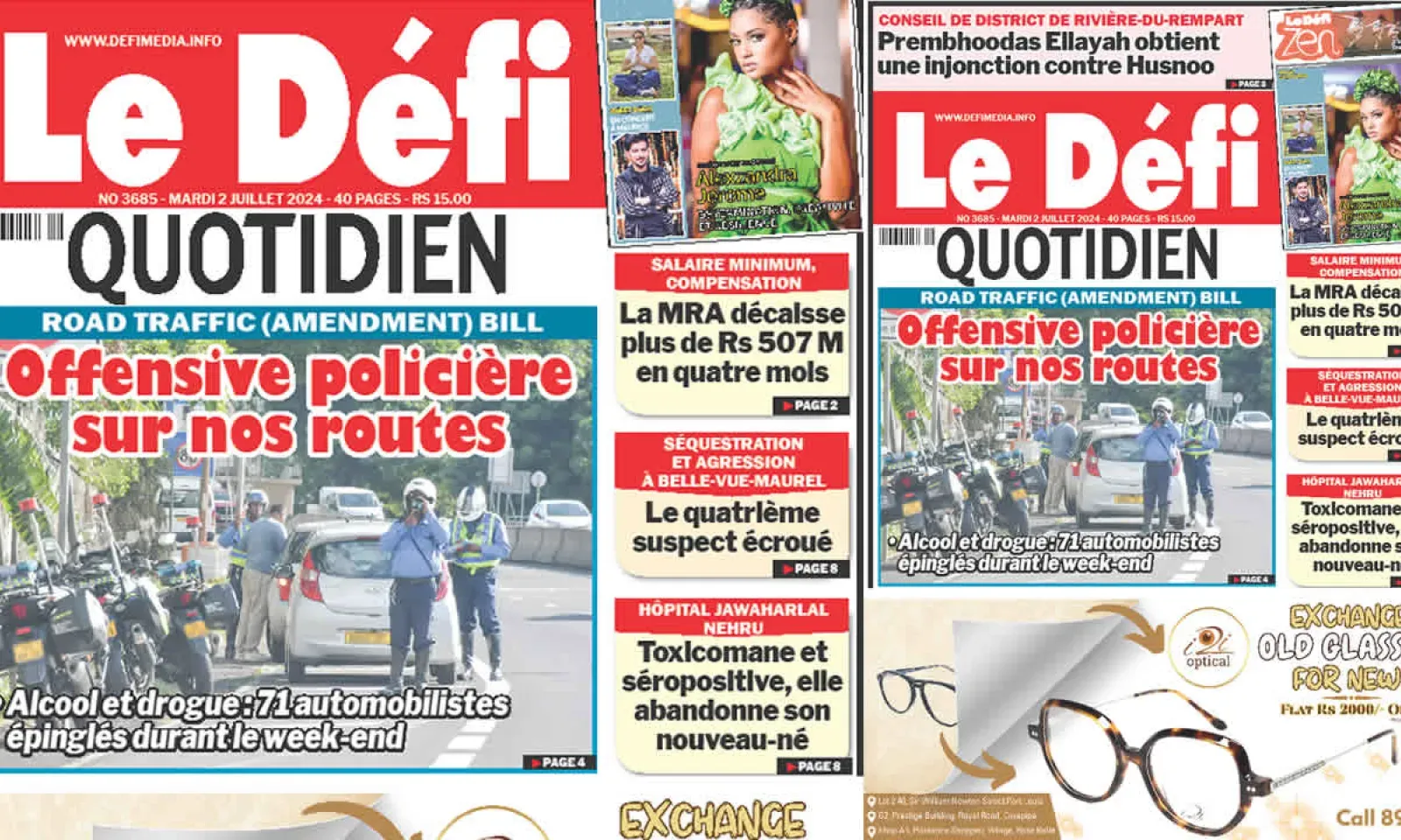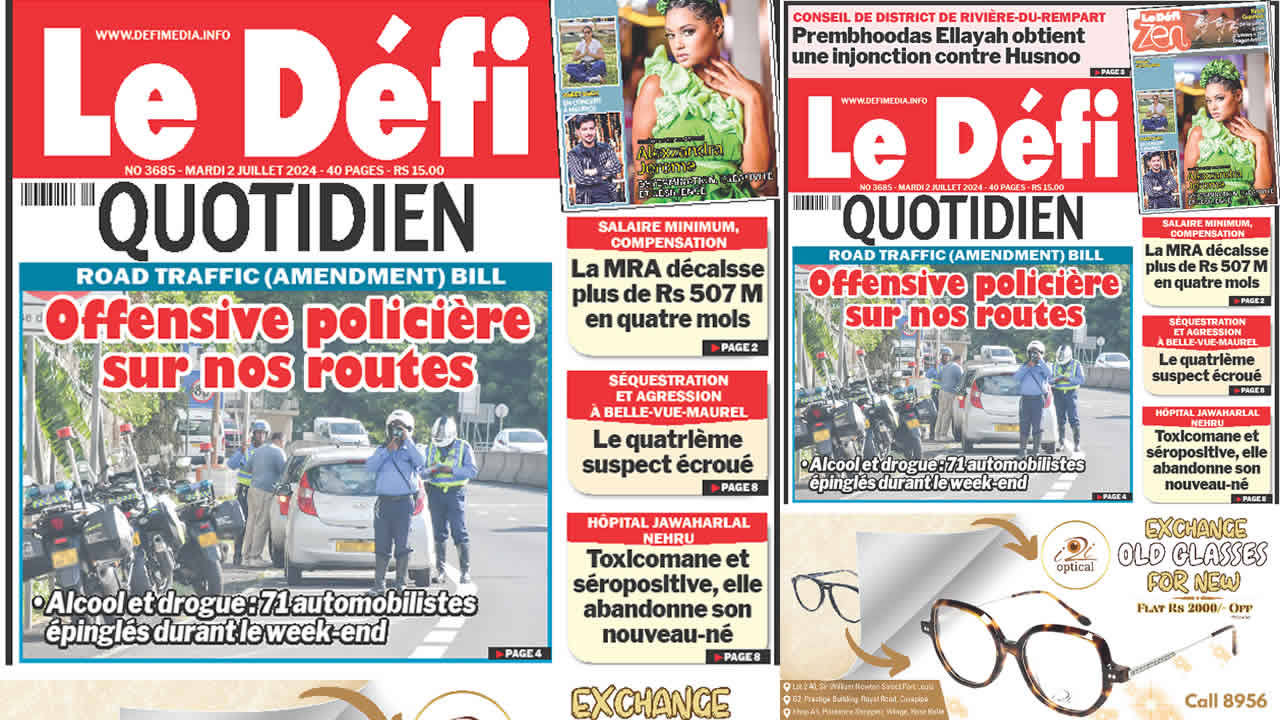? Voici la Une du Défi Quotidien. Le journal est en vente à Rs 15 l'exemplaire aux endroits habituels (supermarchés, boutiques, tabagies, superettes). Bonne lecture !