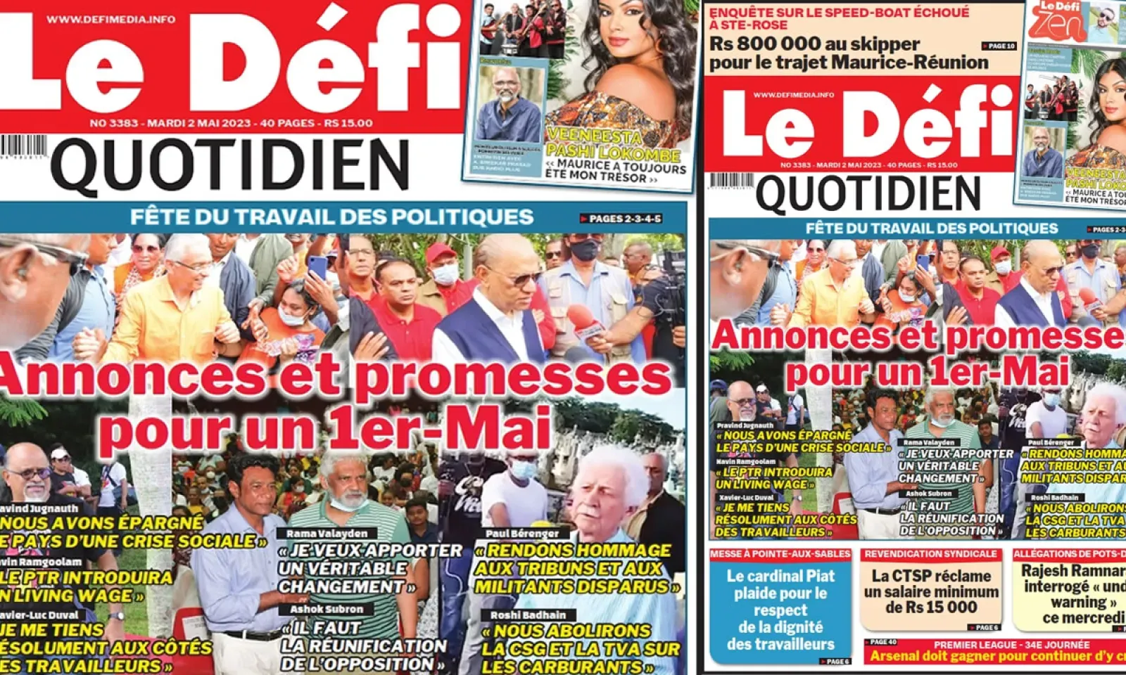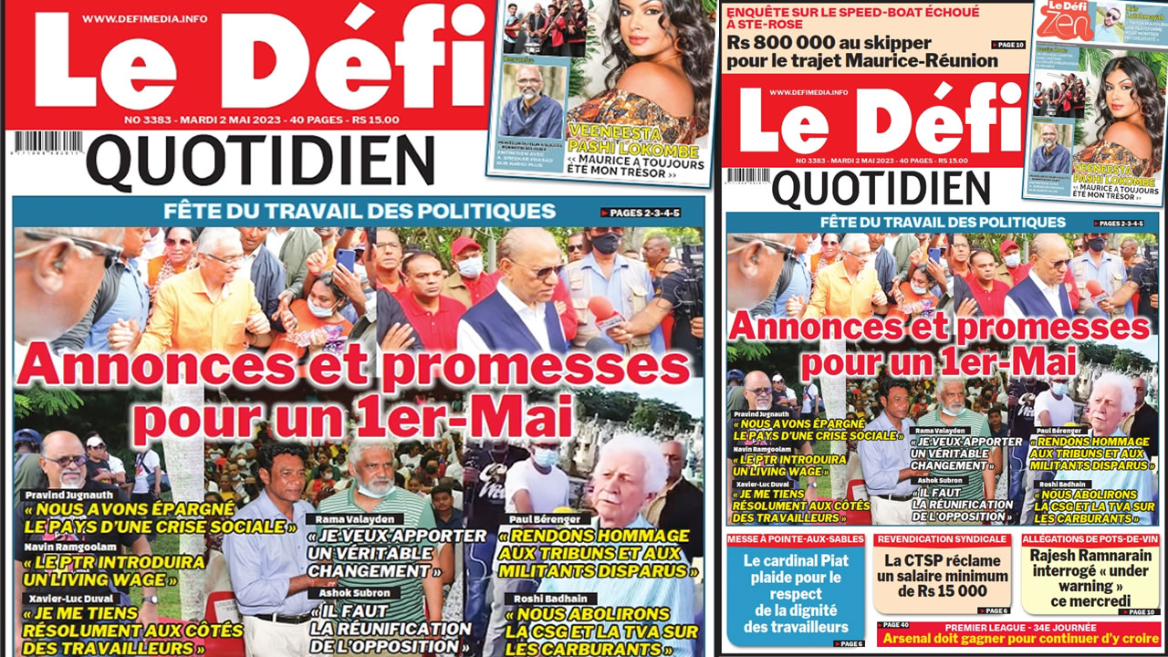 ? Voici la Une du Défi Quotidien. Le journal est en vente à Rs 15 l'exemplaire aux endroits habituels (supermarchés, boutiques, tabagies, superettes). Bonne lecture !