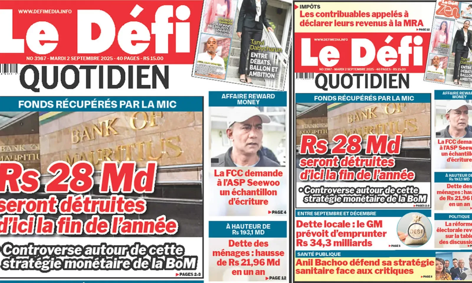 ? Voici la Une du Défi Quotidien. Le journal est en vente à Rs 15 l'exemplaire aux endroits habituels (supermarchés, boutiques, tabagies, superettes). Bonne lecture !