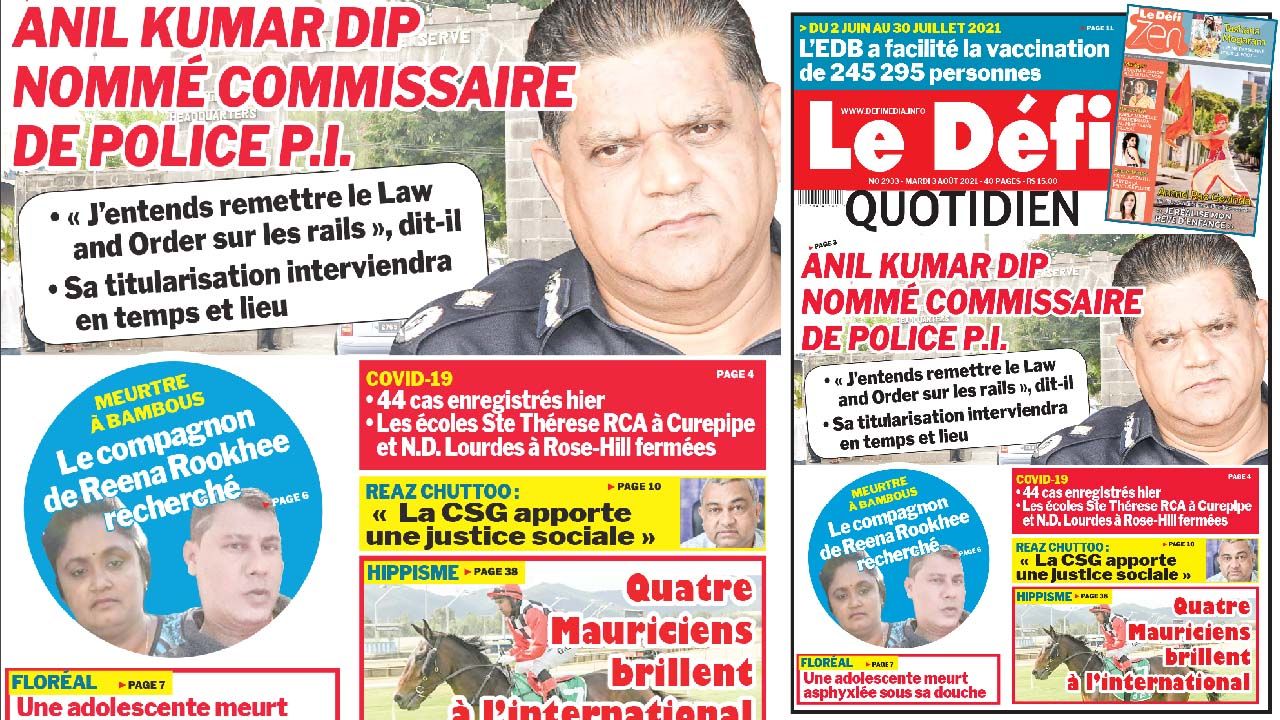 La Disciplined Forces Service Commission a, sur avis du Premier ministre, désigné Anil Kumar Dip au poste de commissaire de police (CP) par intérim. La décision a été prise le lundi 2 août 2021 dans l’après-midi. Plusieurs facteurs ont pesé dans la balance, dont le fait qu’il soit le « most senior » parmi les Deputy Commissioners of Police. Il remplace temporairement le CP sortant Khemraj Servansing