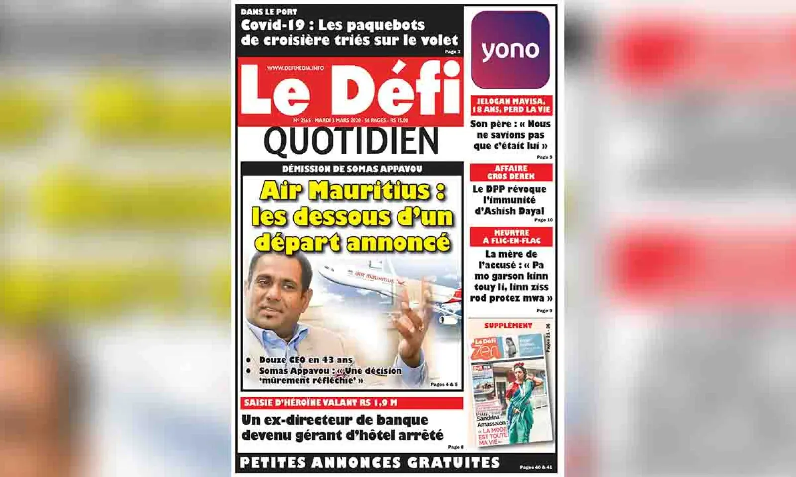Voici la Une du Defi Quotidien de ce mardi 03 mars 2020
